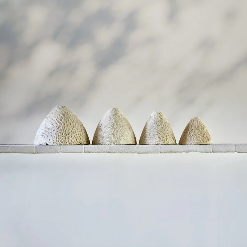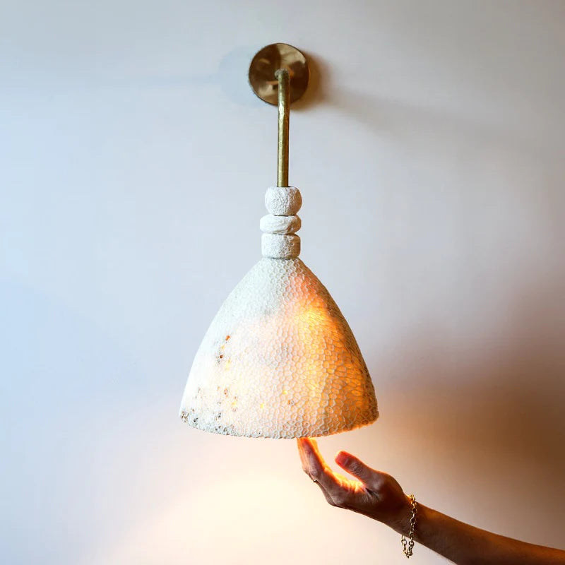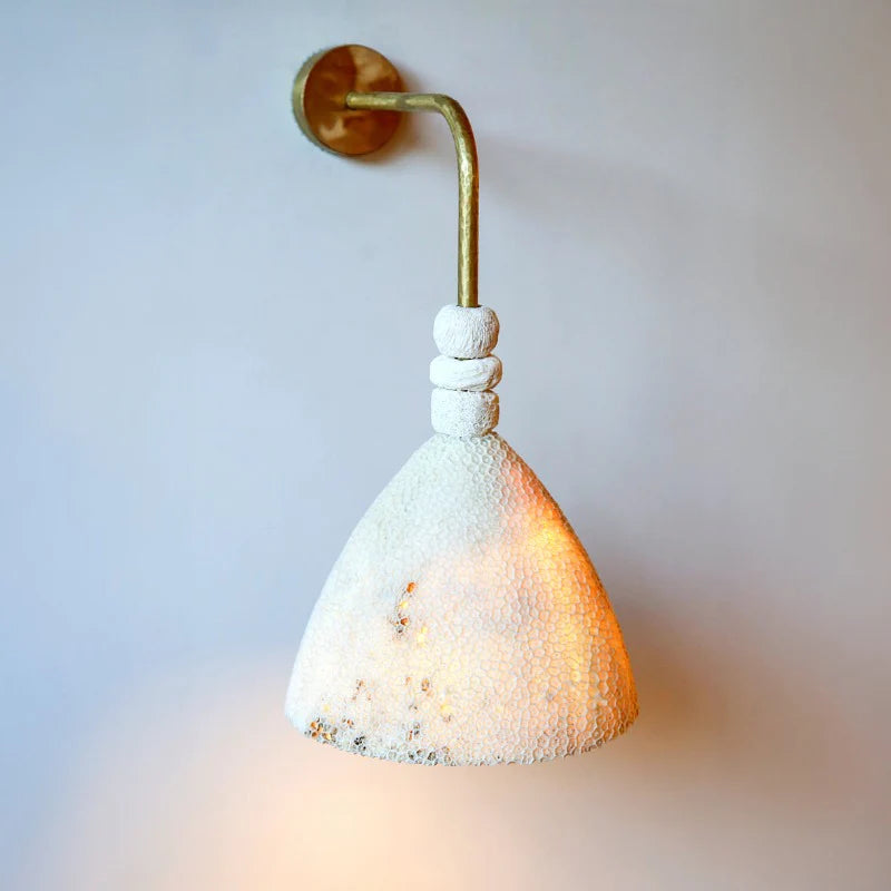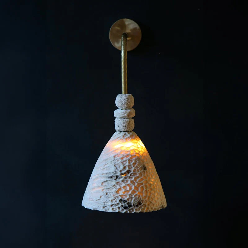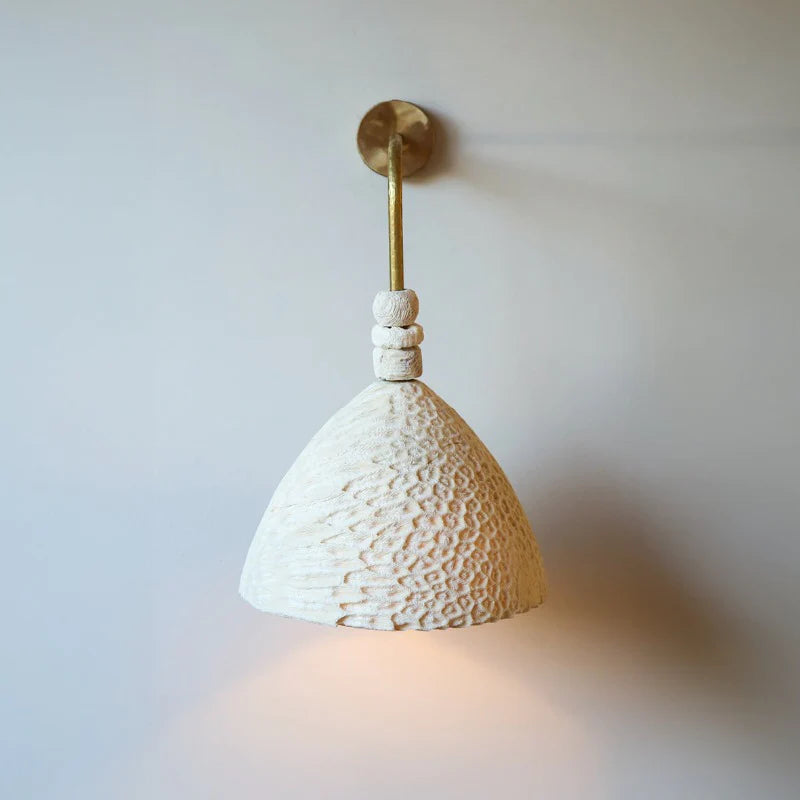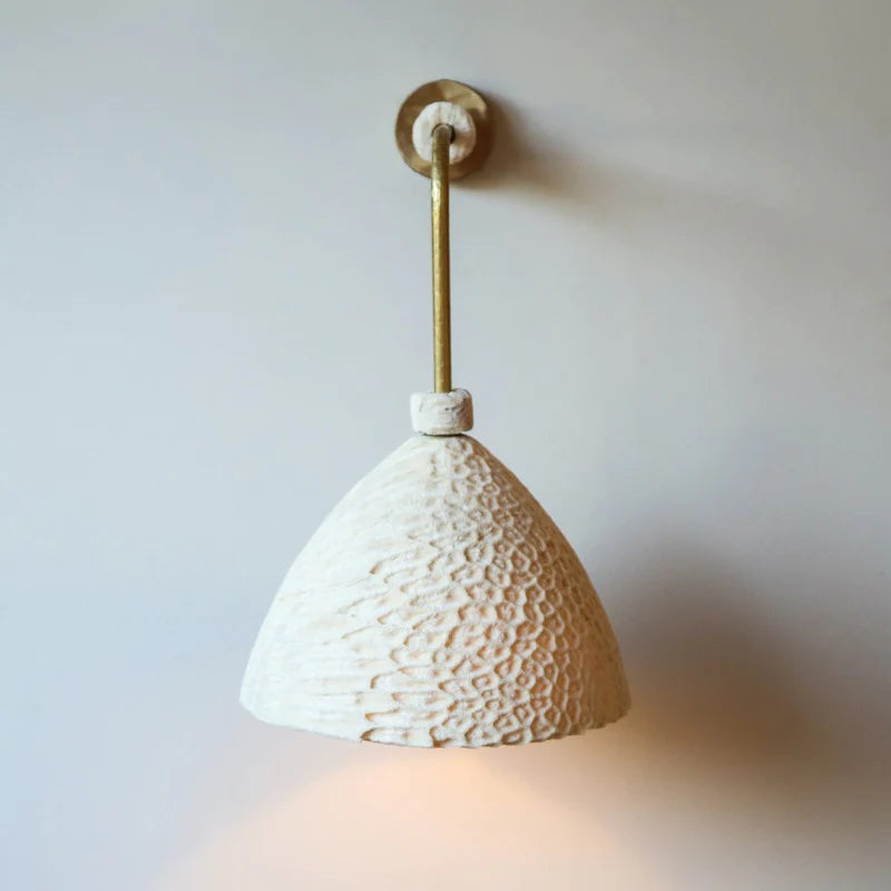 Introducing the Marovo Island Traders' Fossil Coral Arc Cone Wall Light - a celebration of nature's beauty and sacred geometry - exploring the ancient wonder of texture, pattern and light. Crafted from Fossil Coral, a natural stone sculpted over countless years and sustainably sourced from the Solomon Islands. This collection embodies the authenticity of coastal living, casting a warm and inviting glow to interiors. Illuminate your space with this collection and embark on a journey that speaks to the timeless beauty of the natural world.