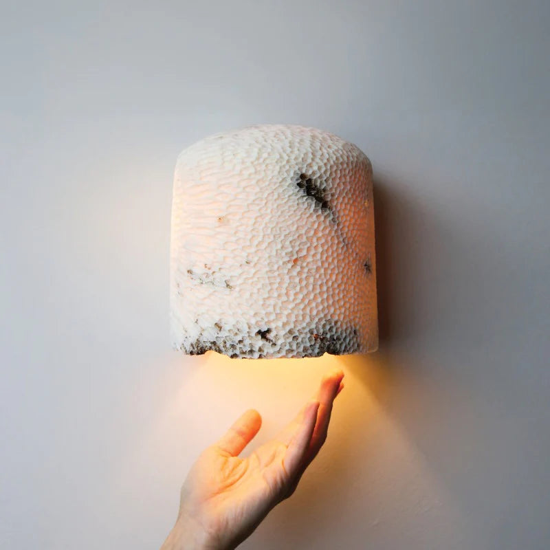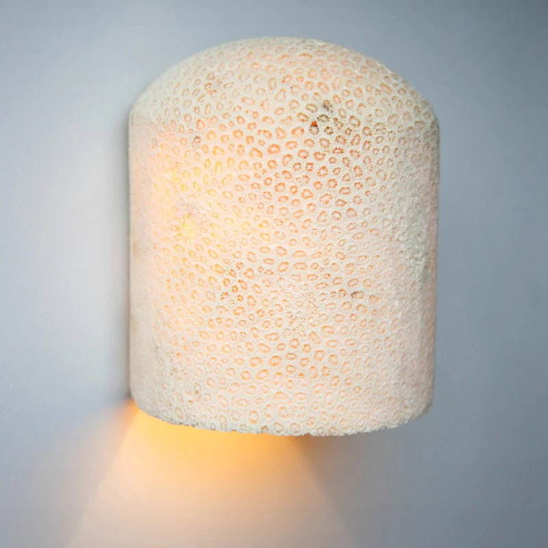 Introducing Marovo Island Traders' Fossil Coral Dome Flush Wall Sconce - a radiant homage to nature's serene beauty and timeless allure. Crafted from the finest Fossil Coral, naturally moulded over countless years and sustainably sourced from the Solomon Islands. This exceptional lighting fixture infuses a touch of rustic elegance into any space. Each piece, showcasing the stone's distinctive character, serves as a truly organic addition, celebrating Earth's rich geological history and sacred geometry. Illuminate your space with the inviting warmth of coastal living, courtesy of this captivating piece. It's not just a light; it's a reminder of the remarkable stories told by nature and a tribute to the authenticity of coastal living, offering a radiant glow to your surroundings.