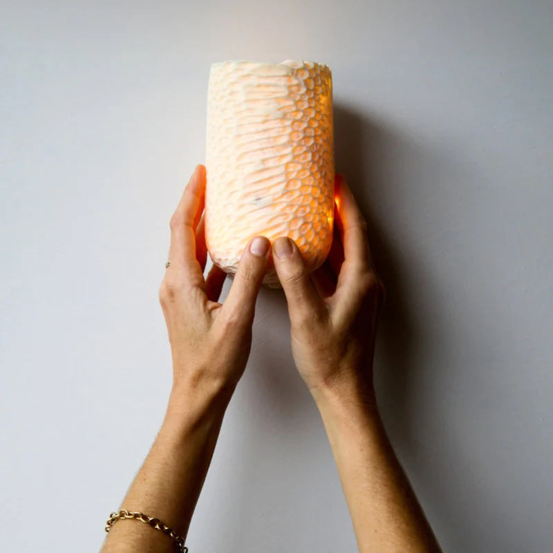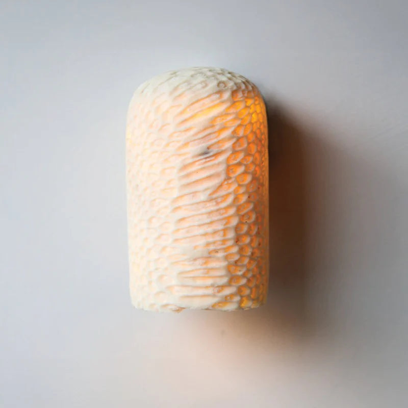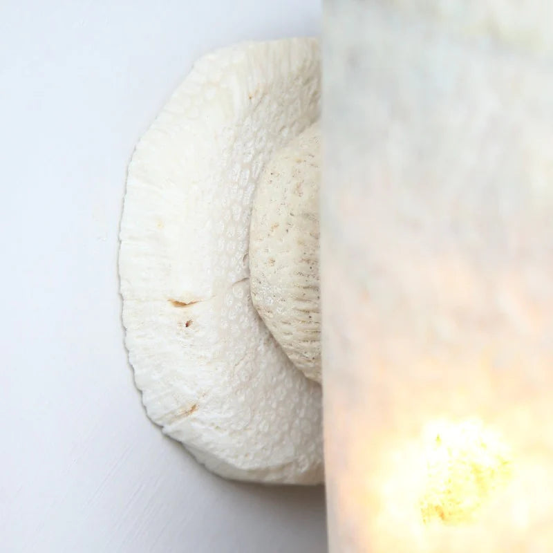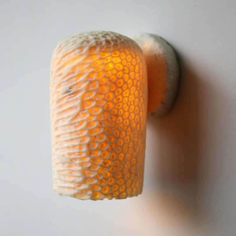 Introducing Marovo Island Traders' Fossil Coral Dome Wall Sconce - a homage to nature's serene beauty and timeless allure. Crafted from sustainably sourced Fossil Coral, a natural stone, moulded over countless years, this exceptional lighting fixture infuses a touch of rustic elegance into any space. Each piece, showcasing the stone's distinctive character, serves as a truly organic addition, celebrating Earth's rich geological history and sacred geometry. Illuminate your space with the inviting warmth of coastal living, courtesy of this captivating piece. It's not just a light; it's a reminder of the remarkable stories told by nature and a tribute to the authenticity of coastal interiors.