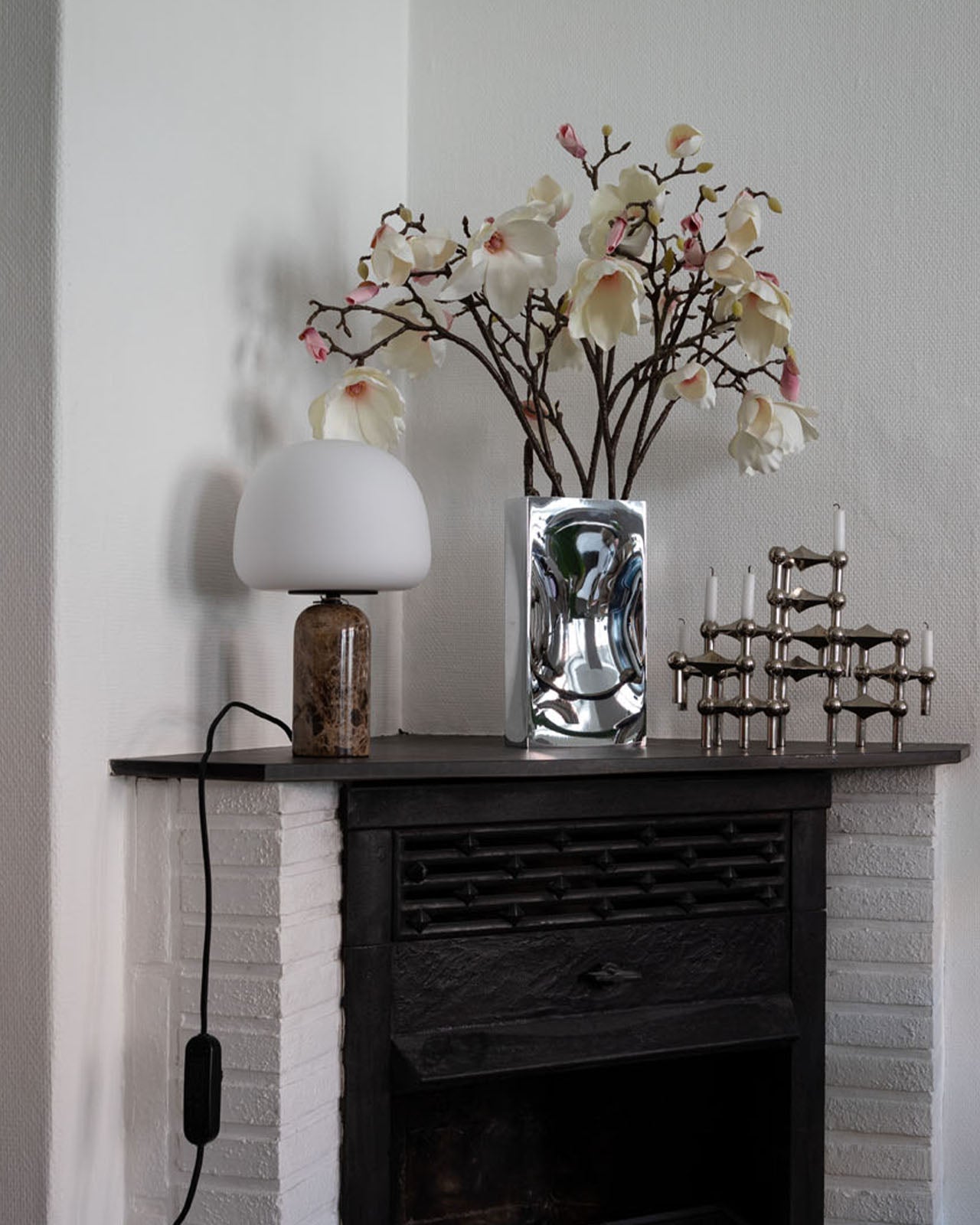 Contemporary Brown Marble Table Lamp On a Fire Place light off Small size