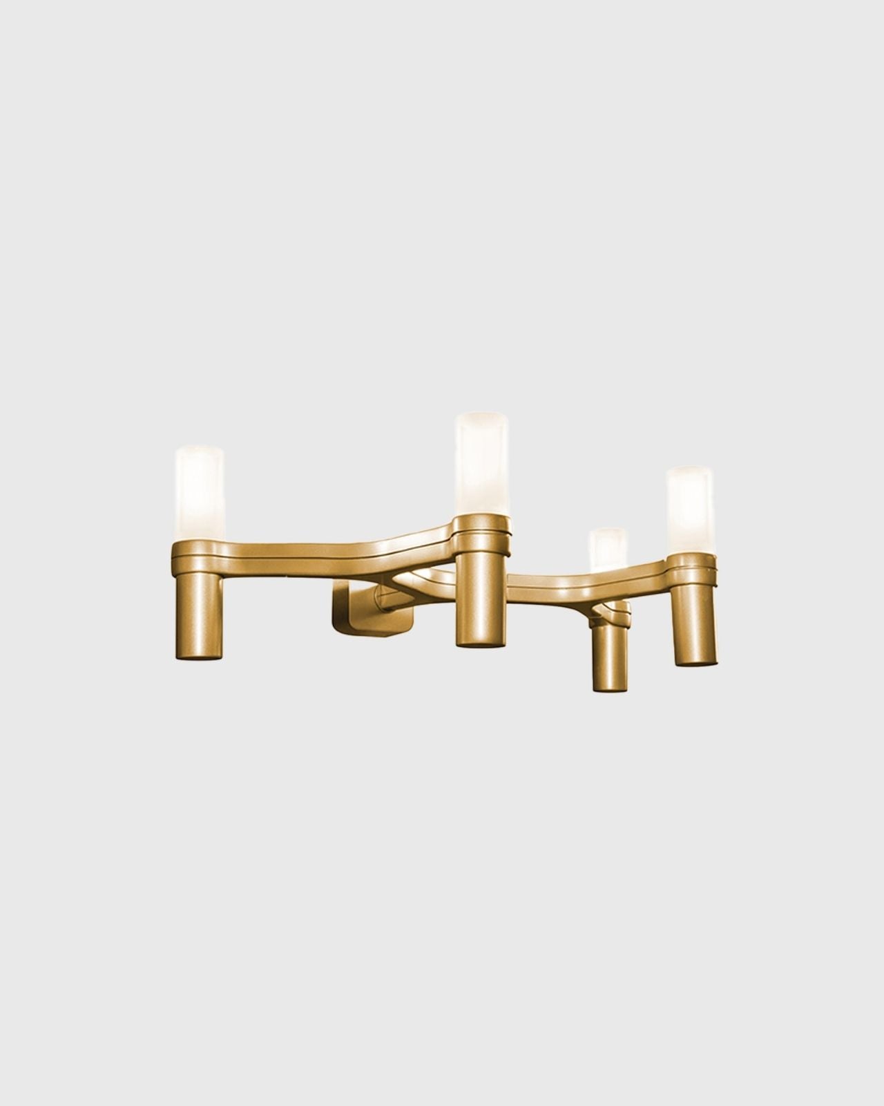 This Italian-designed wall light by JEHS + LAUB is an eye-catching amalgamation of die-cast aluminium and sandblasted glass diffuser. The artists' artwork was used as inspiration for this unique design, giving it a seamless look with no beginning or end. With a hand-polished body, these fixtures are available in gloss or gold plated, and a range of other matte or metallic finishes. Choose between 2-arm or 4-arm configurations in the 4 Light Series.
