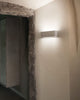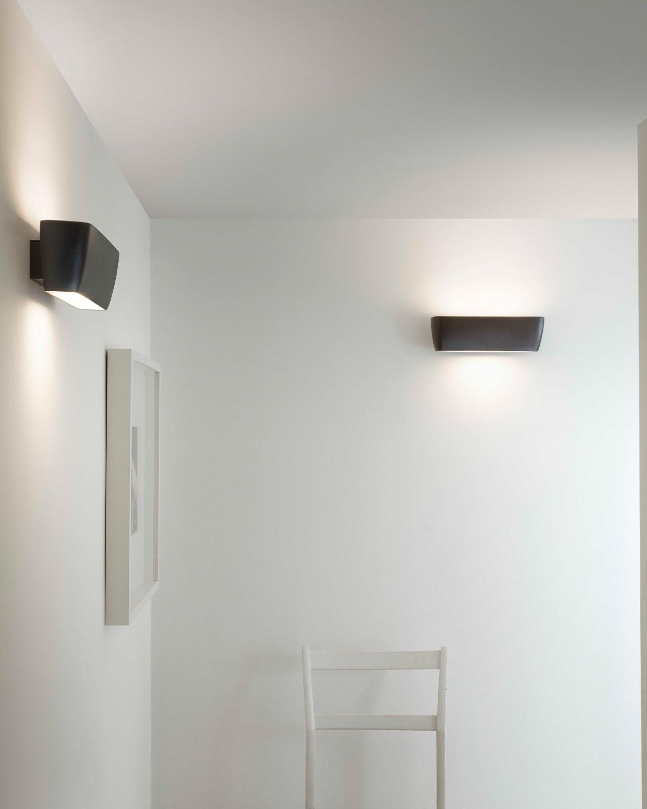 This stunning and unique Italian Made Wall lamp is formed from solid aluminium. It has a Dual output for a flood uplight and downlight which displays a beautiful soft yet luminous glow across your wall. Its Frame is coated in either your choice of either matt white, Moka, champagne or anthracite. It is suitable for installation on inflammable surfaces. It can also be wired to be dimmable.