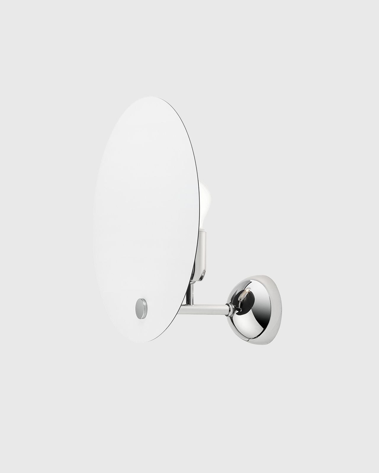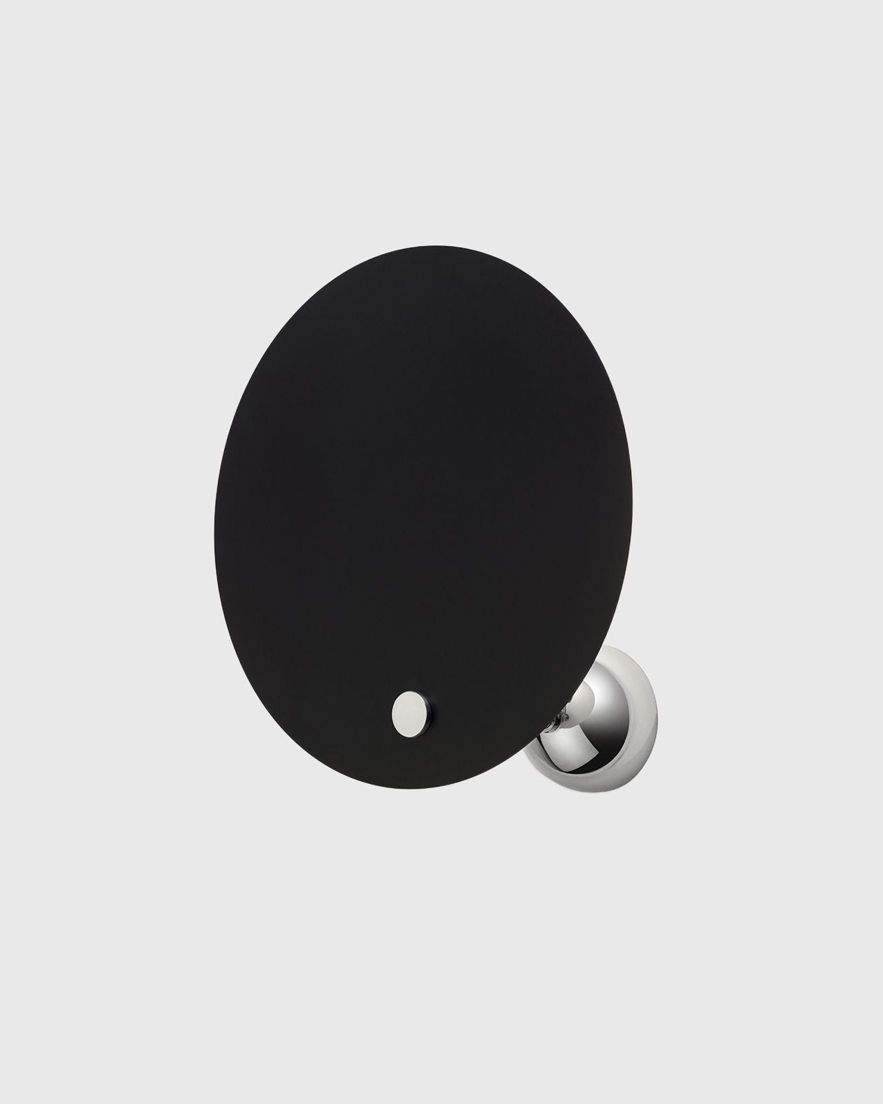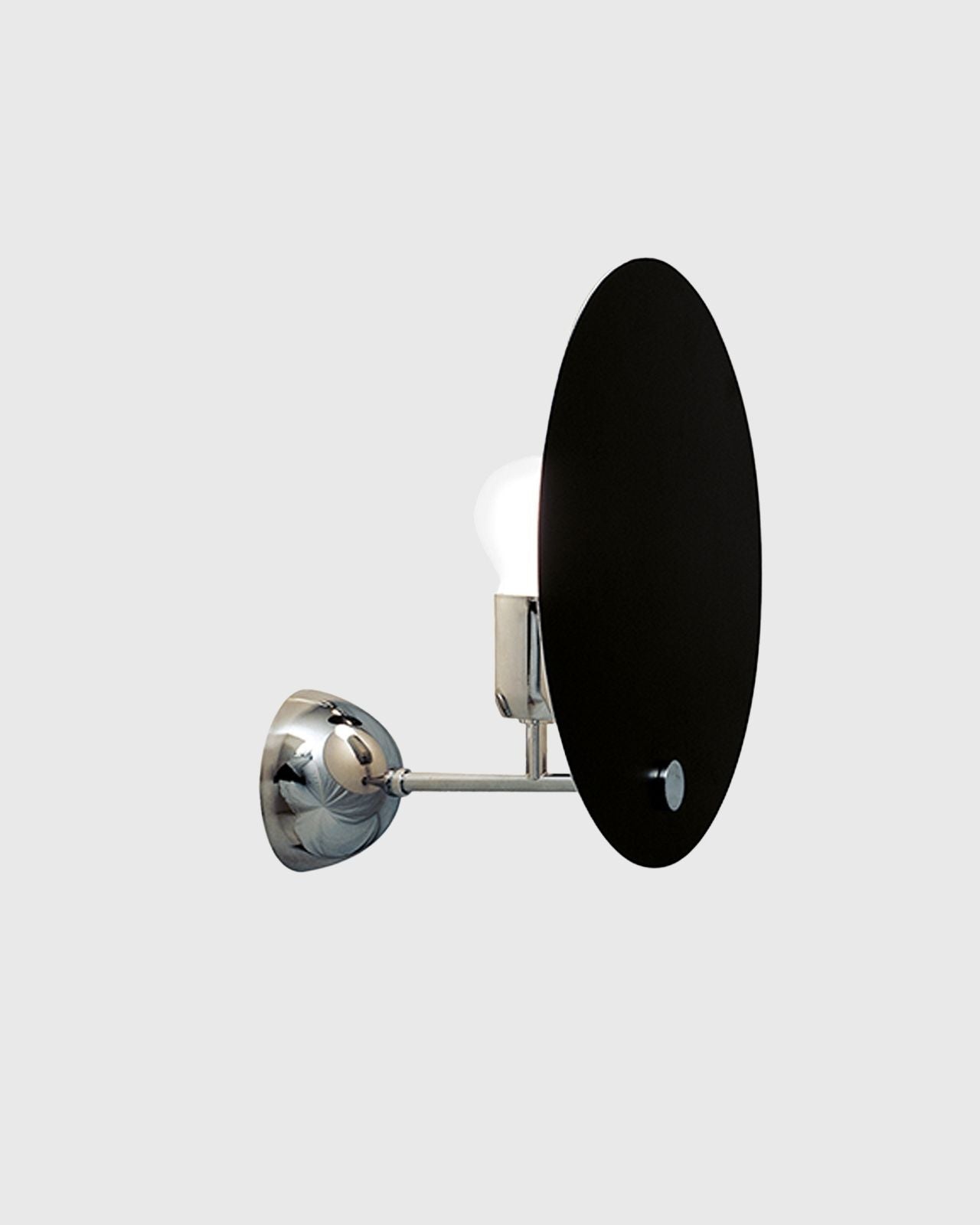 Designed by renowned Italian architect Vico Magistretti this indirect wall light plays with light and shadow combining geometric rigour and simplicity. This fixture is composed of a small hemispherical base with a chrome finish and a slender metal stem on which is fixed the light source and an aluminium circular reflector. The reflector is available in a white or black finish and provides a diffused illumination remenicent of a solar eclipse creating an inviting atmosphere that will suit modern corridors, contemporary living rooms or mid-century bedrooms.