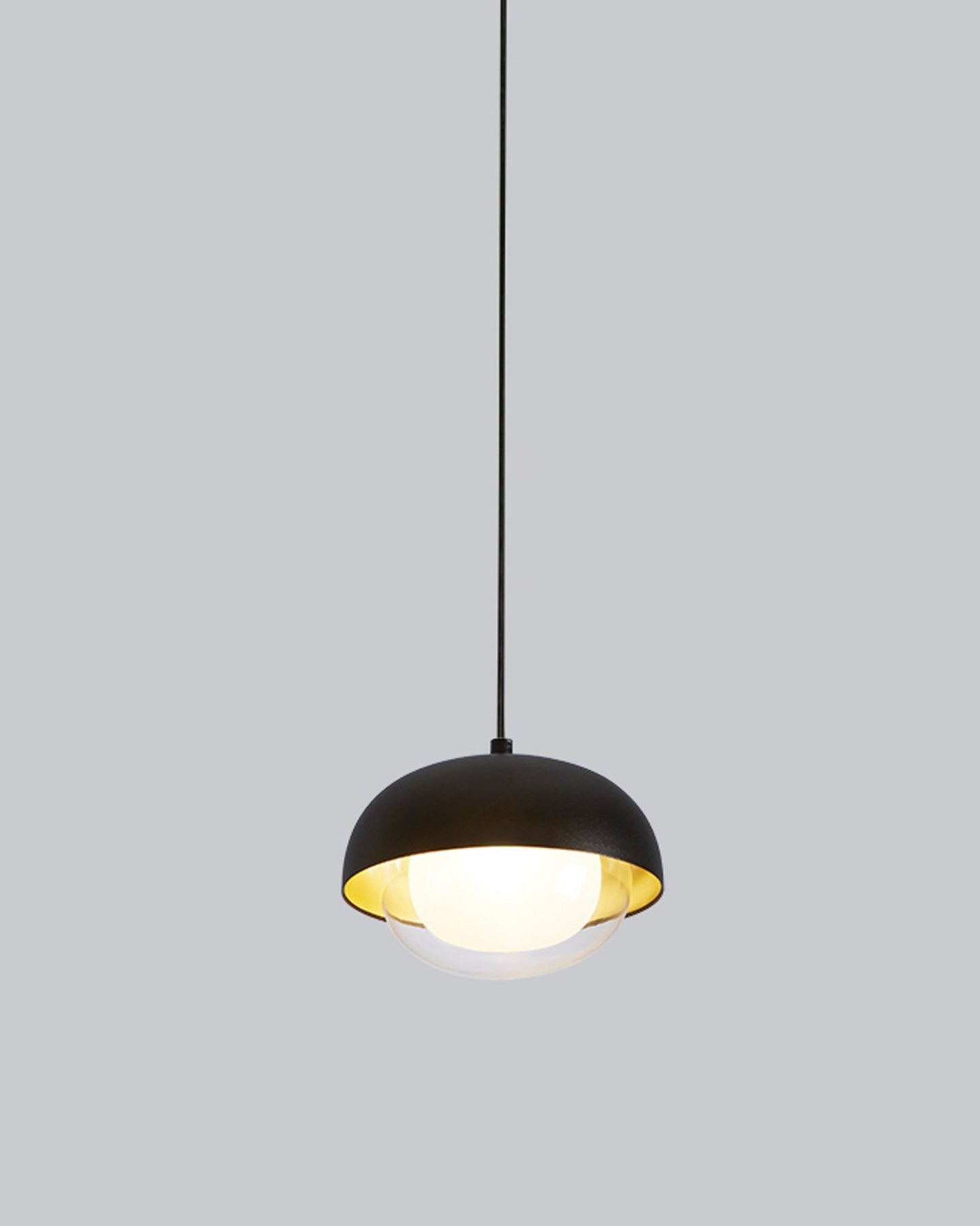 This refined neo-vintage metal dome glass pendant blends timeless charm with contemporary design. Featuring a borosilicate glass diffuser, this fitting radiates a soft, balanced glow. The metal dome comes in brushed brass and copper internal finishes, creating striking contrasts and rich textural harmonies.