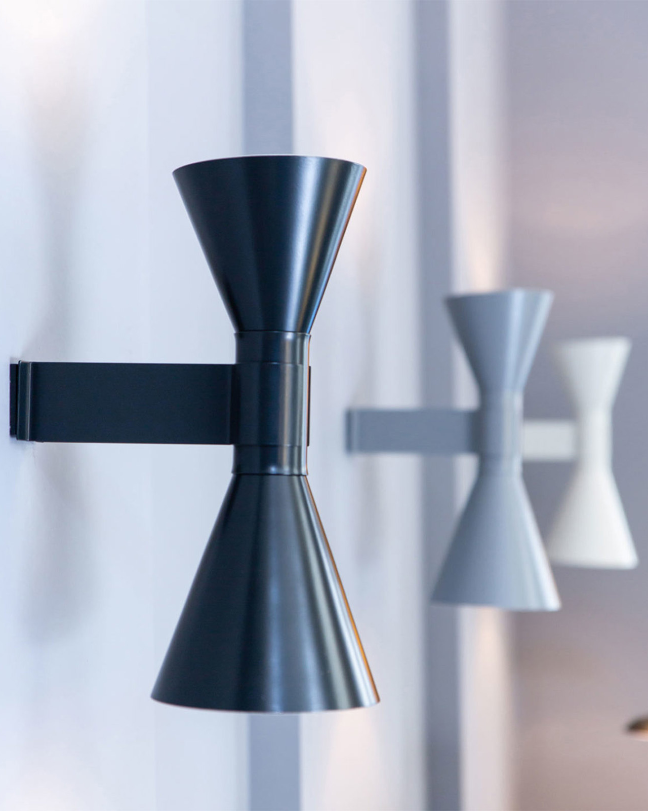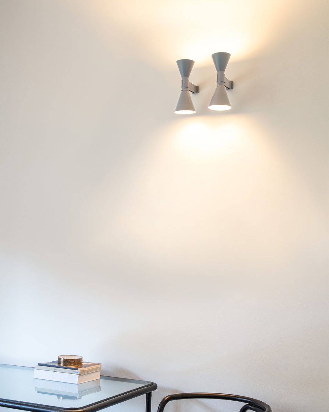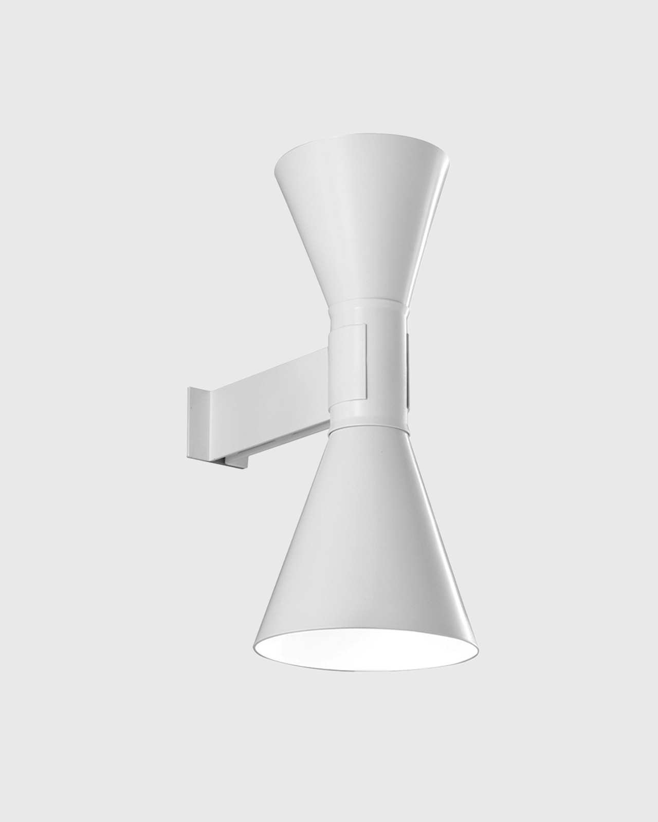 This classic Italian made mid-century wall light was designed in 1938 by a pioneer of lighting design, Le Corbusier, and re-released to the public in 2013 by Italian craftsmen. The clean lines and refined design ensure this wall light will provide timeless style, available in grey, white or black. These shades wash light up and down the wall for ambient lighting. Each shade features a painted white interior to produce maximum light reflection.