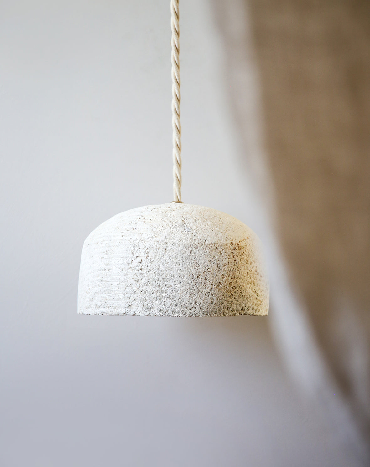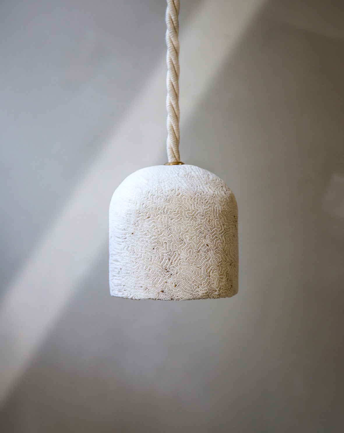 Fossil Coral Dome Hanging Pendant - Small / 1 Bead / Jute