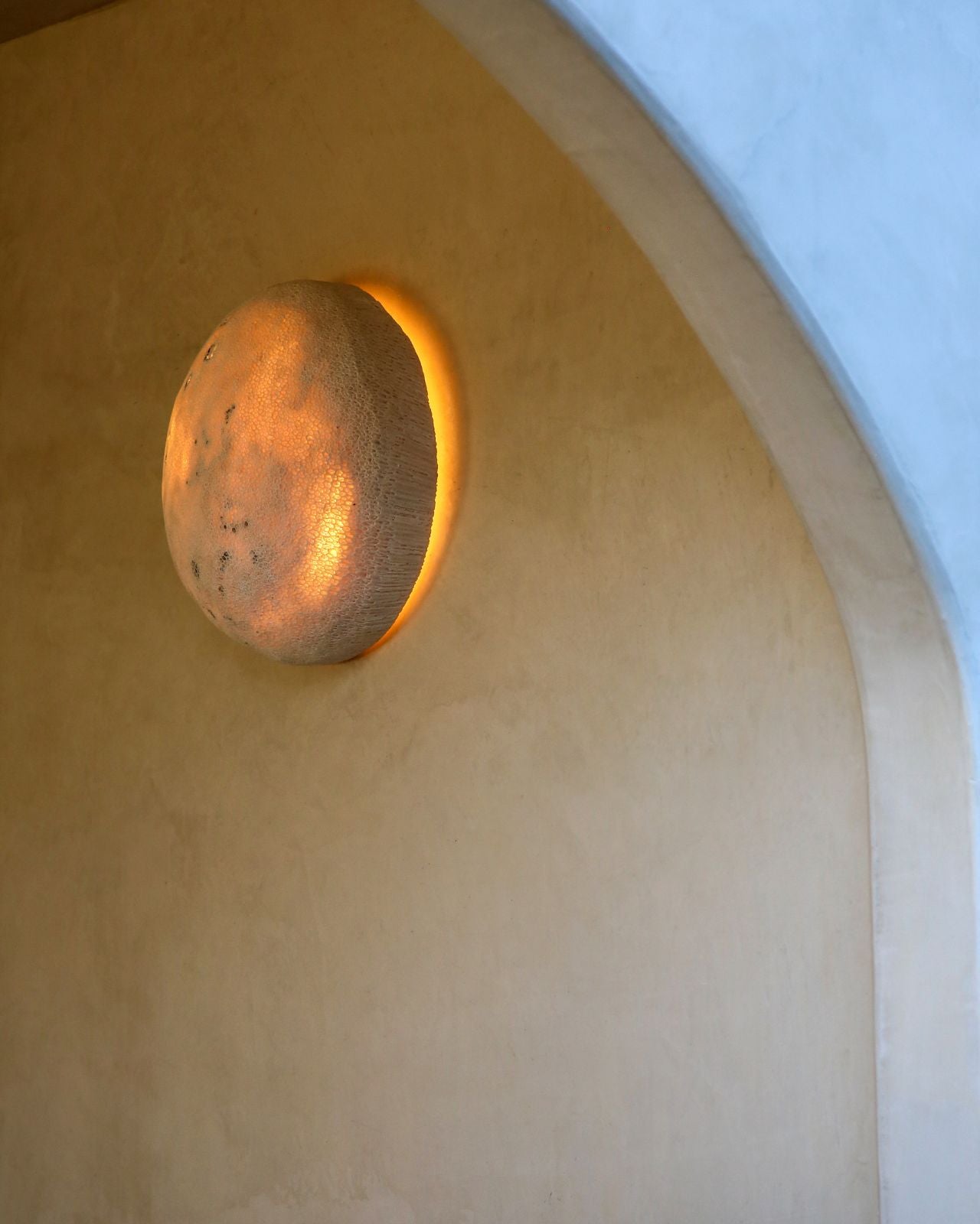 Once part of ancient coral reefs, fossil coral carries a visible connection to the planet’s geological history. When illuminated, the Moon Wall Light emits a soft, ambient glow, making it a distinctive addition to coastal, relaxed, and materially driven interiors.
