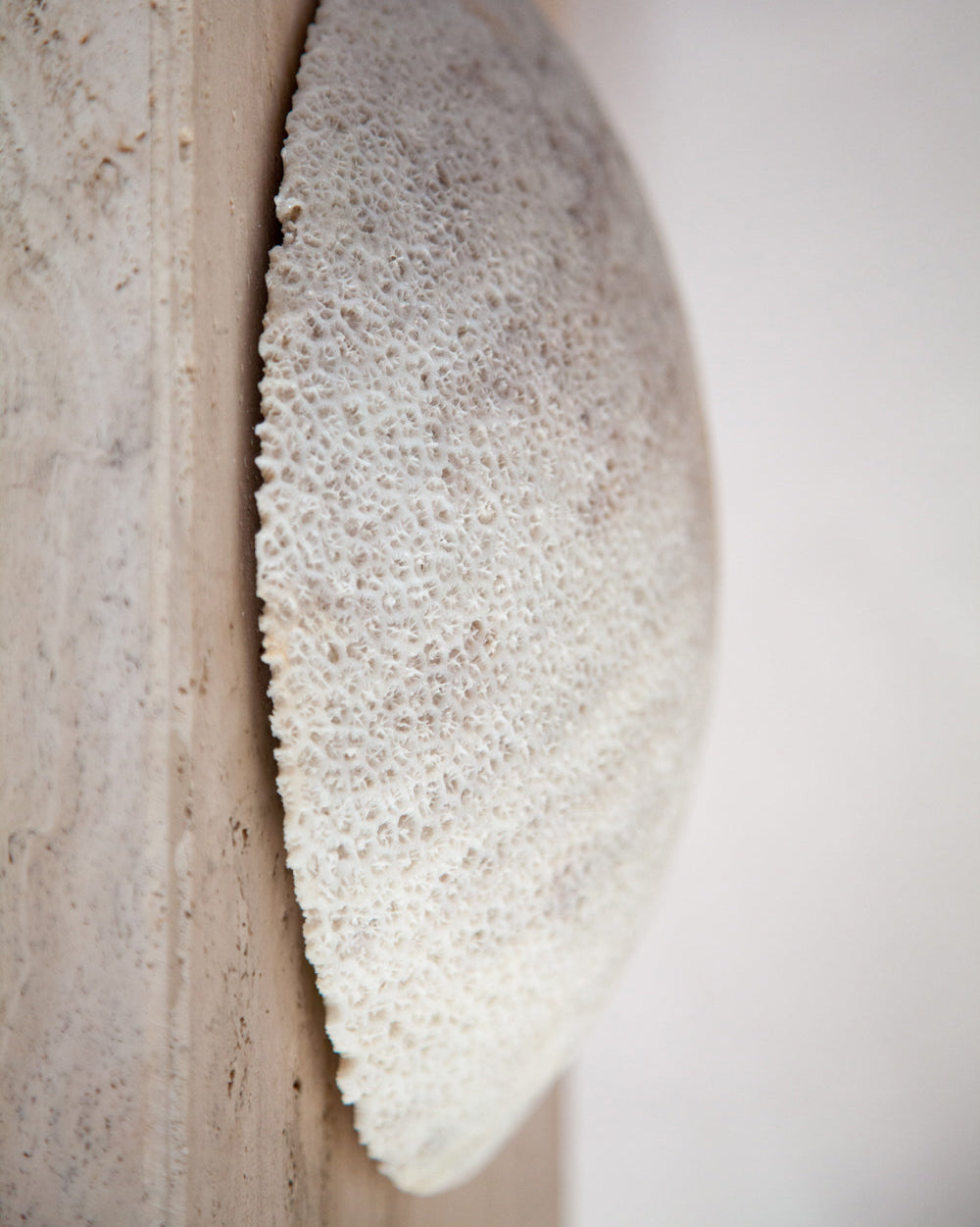 Marovo Island Traders sustainably sources fossil coral from the Solomon Islands, working with natural materials in a way that respects both place and process. No two wall lights are exactly alike, with each showcasing the authentic character of the stone.