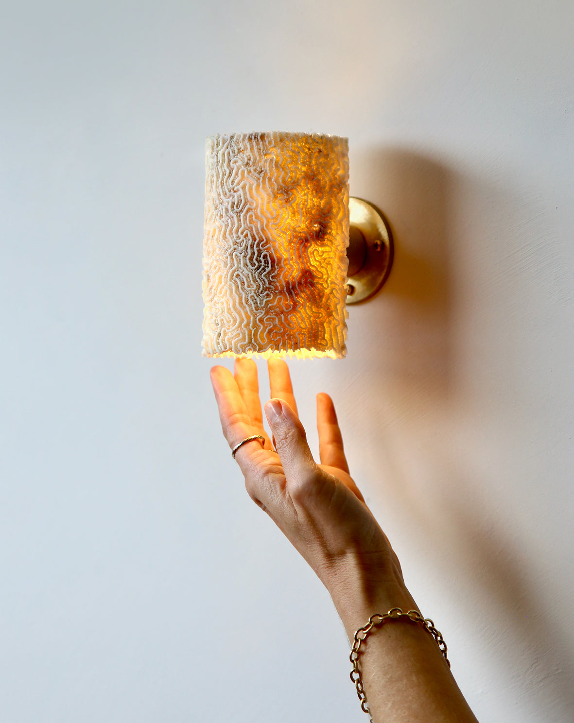 Fossil Coral Tube Wall Sconce - Small / Brass