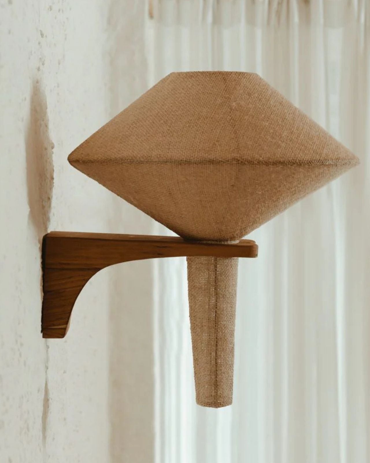 Handcrafted using goni weave and aged teak, this geometric wall sconce is perfect for enhancing any coastal-luxe home or commercial space. Designed in Australia, the soft glow emitted through the woven shade creates a beautiful ambience. As this product is handmade, slight variations may occur, resulting in a one-of-a-kind light.