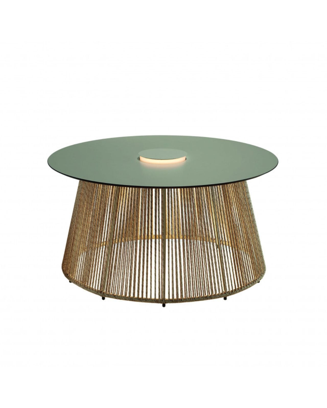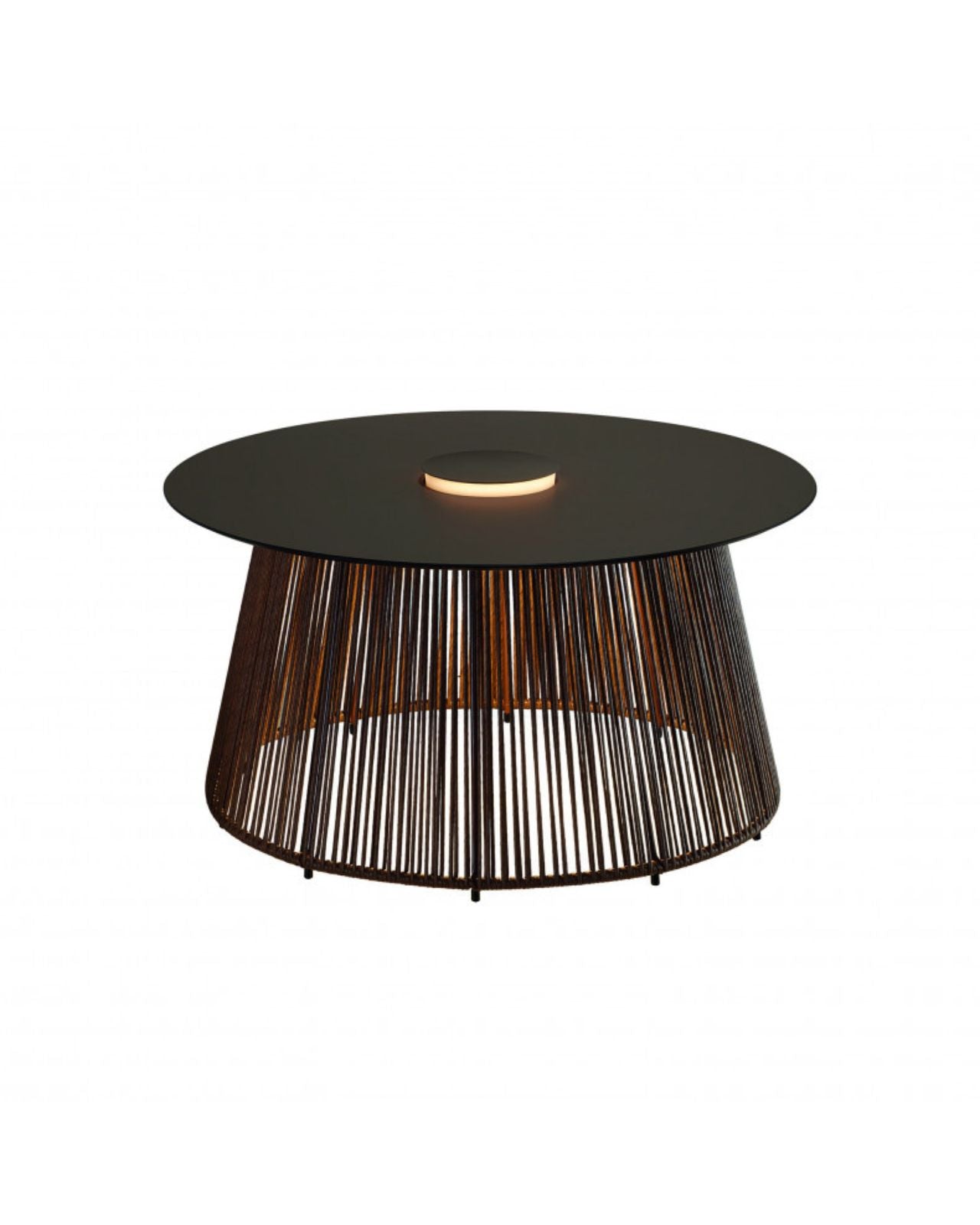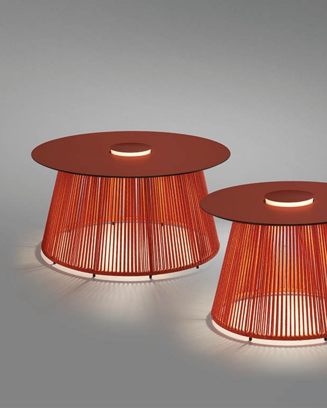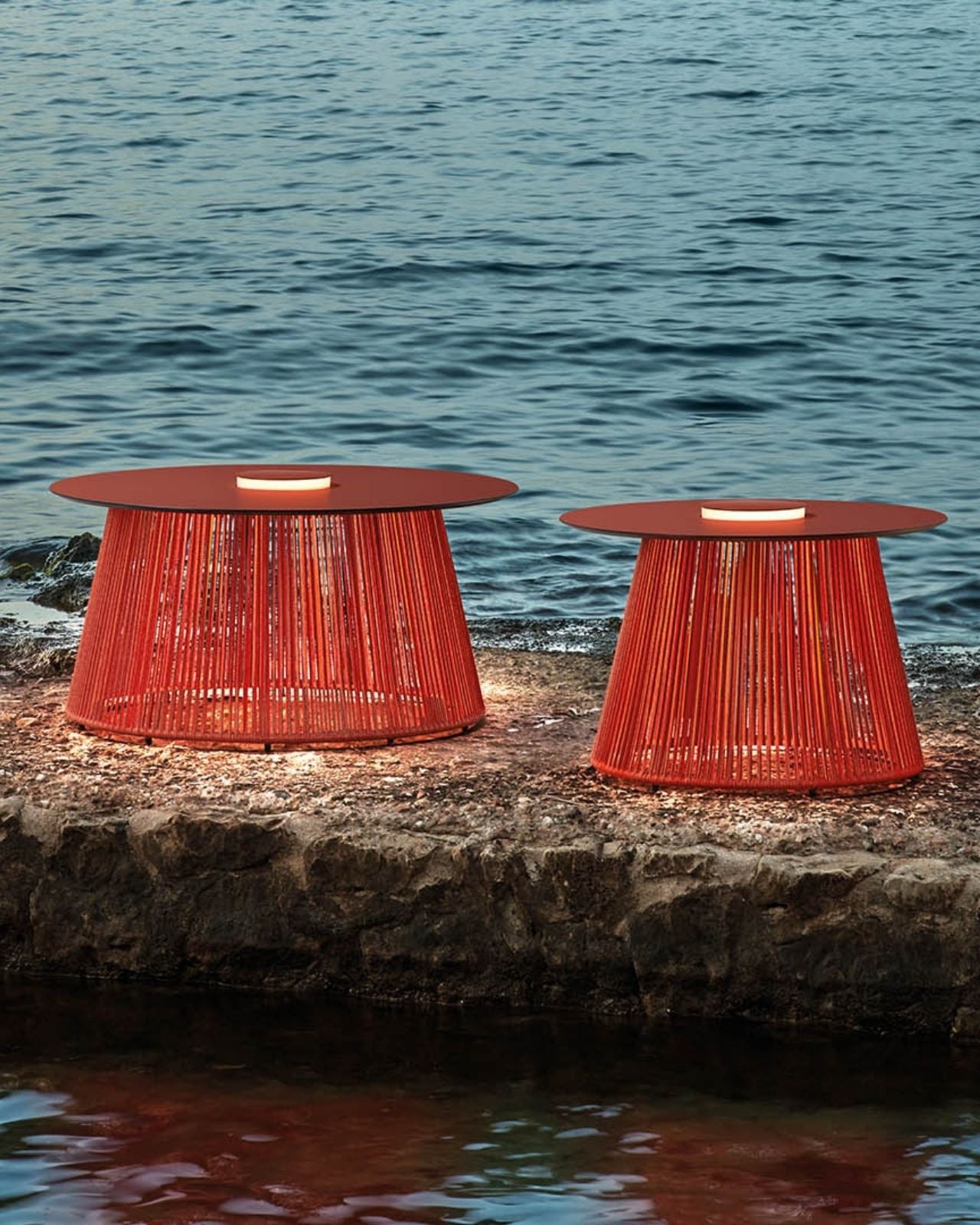 The Mediterranean Woven Floor Lamp is a stylish portable lamp, made from an aluminium frame and nautical cord details. Designed with convenience in mind, this battery-powered lamp acts as a table with a removable LED in the centre of the tabletop. This lamp is ideal for outdoor gatherings, featuring three dimming options, illuminating whatever is placed on the table, and shining through the cord that decorates the base. Available in three unique finishes.