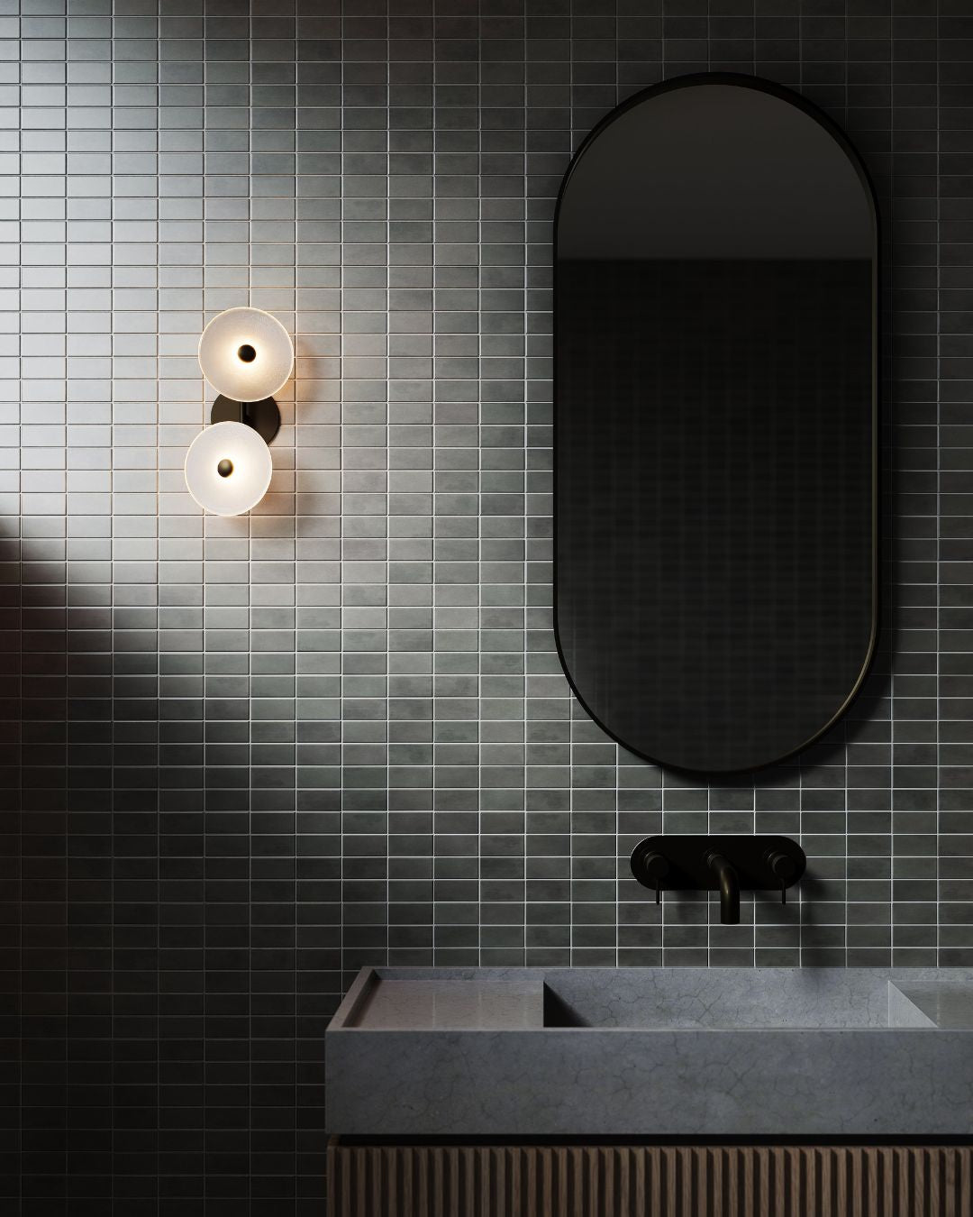 Crafted and designed by Soktas in Currumbin, Australia, the Asymmetrical Coral Duo Rod Wall Light is a unique focal piece. Hand made with two off-centre discs on a sleek rod in Brass, Matte White, Matte Black, Medium Bronze and Steel, this is a versatile, suitable for a variety of contemporary interiors. With an IP44 rating, making it suitable to install in bathrooms.