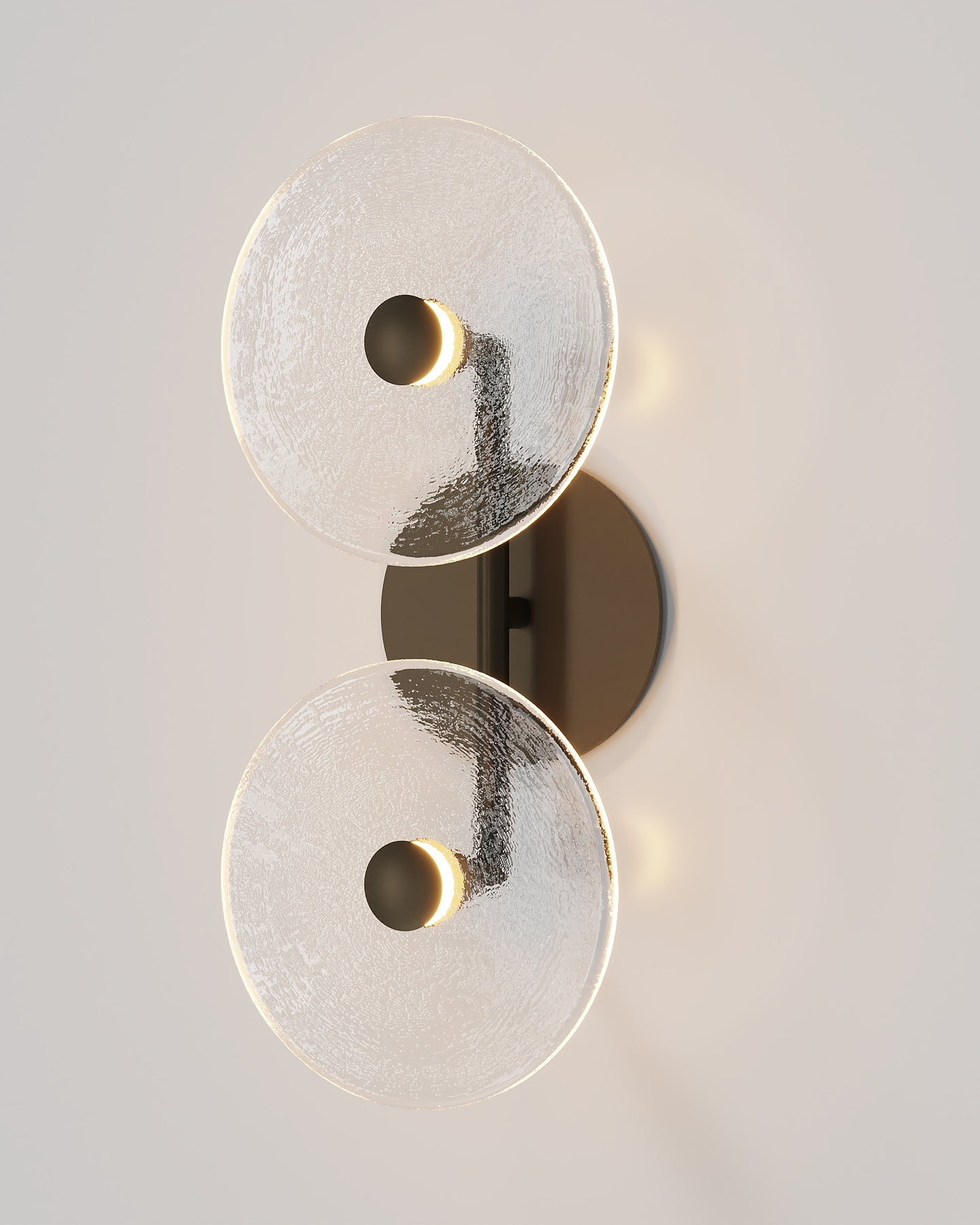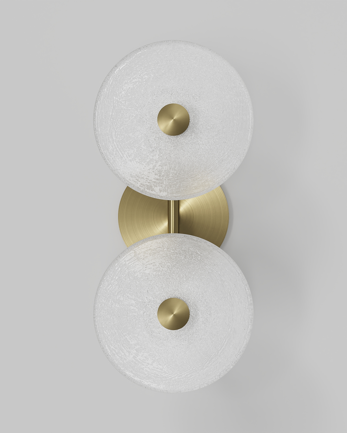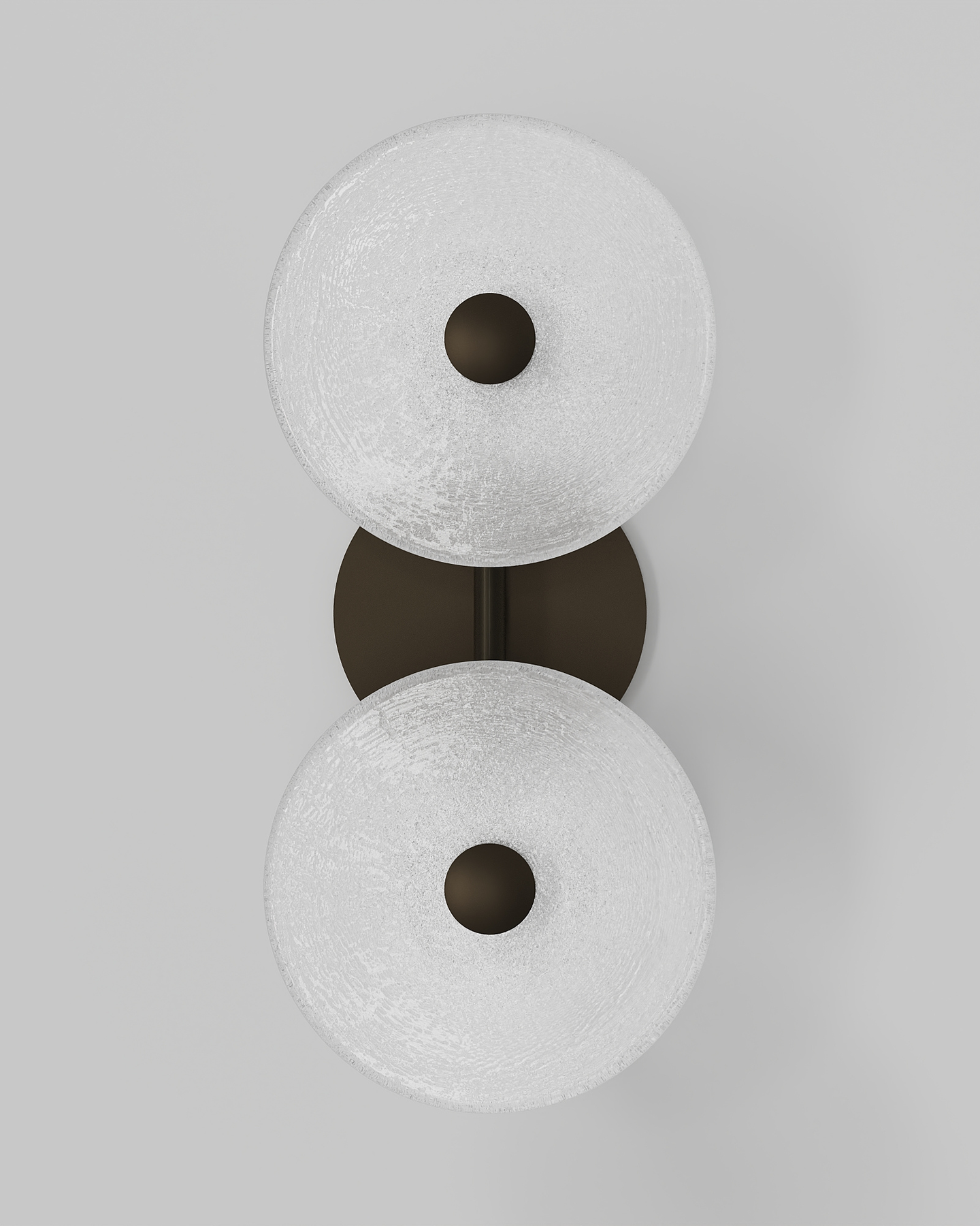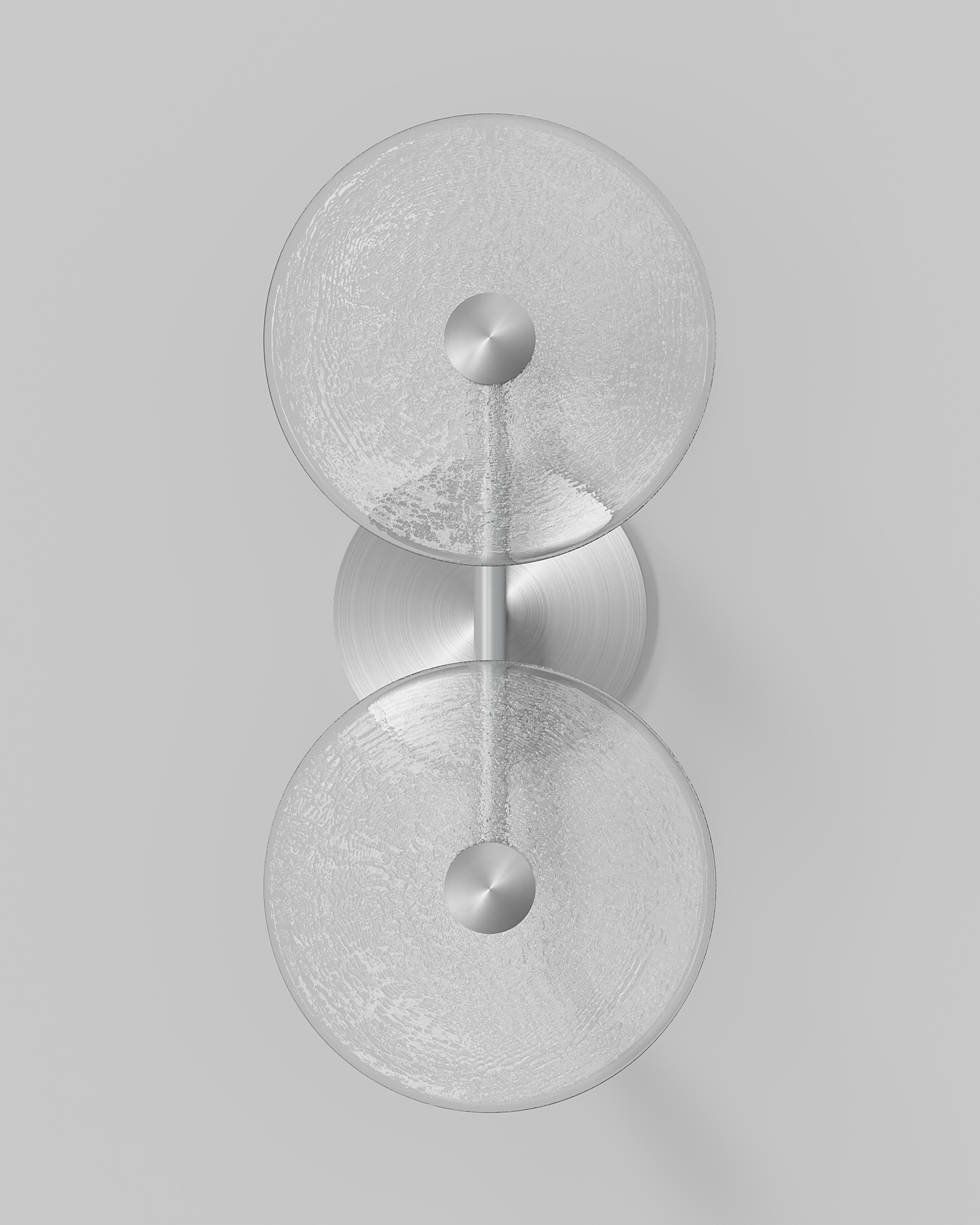 The Coral Duo Rod Wall Light, crafted and designed in Currumbin, Australia is a unique fitting made from two glass discs, mounted perpendicularly to a sleek rod. Available in Brass, Matte White, Matte Black, Steel and Medium Bronze, this fitting is versatile and suitable for a variety of contemporary interiors. Install a frosted glass fitting above a bedside table for a soft diffused light, or use the clear glass versions in clusters in a hallway for a more direct light.