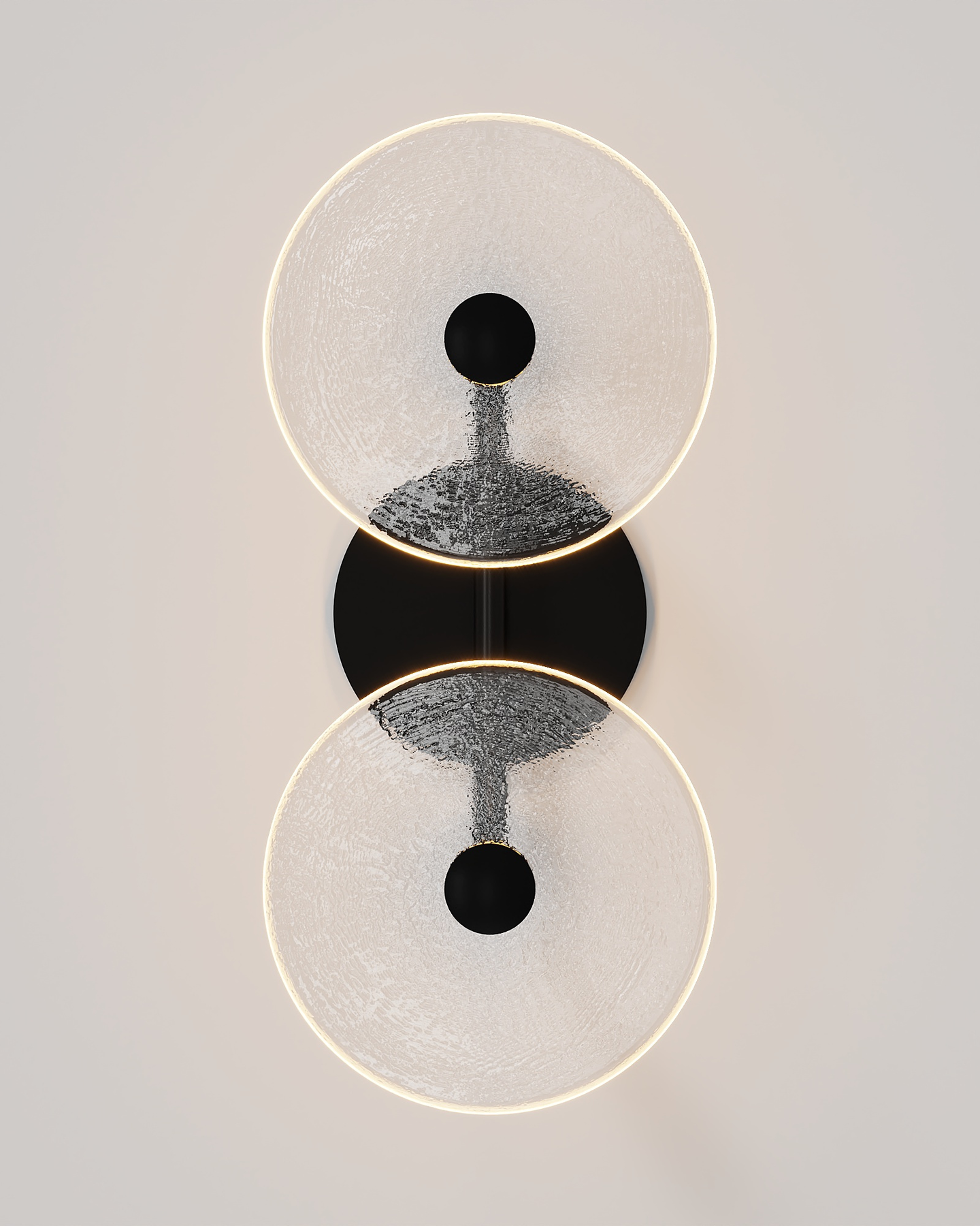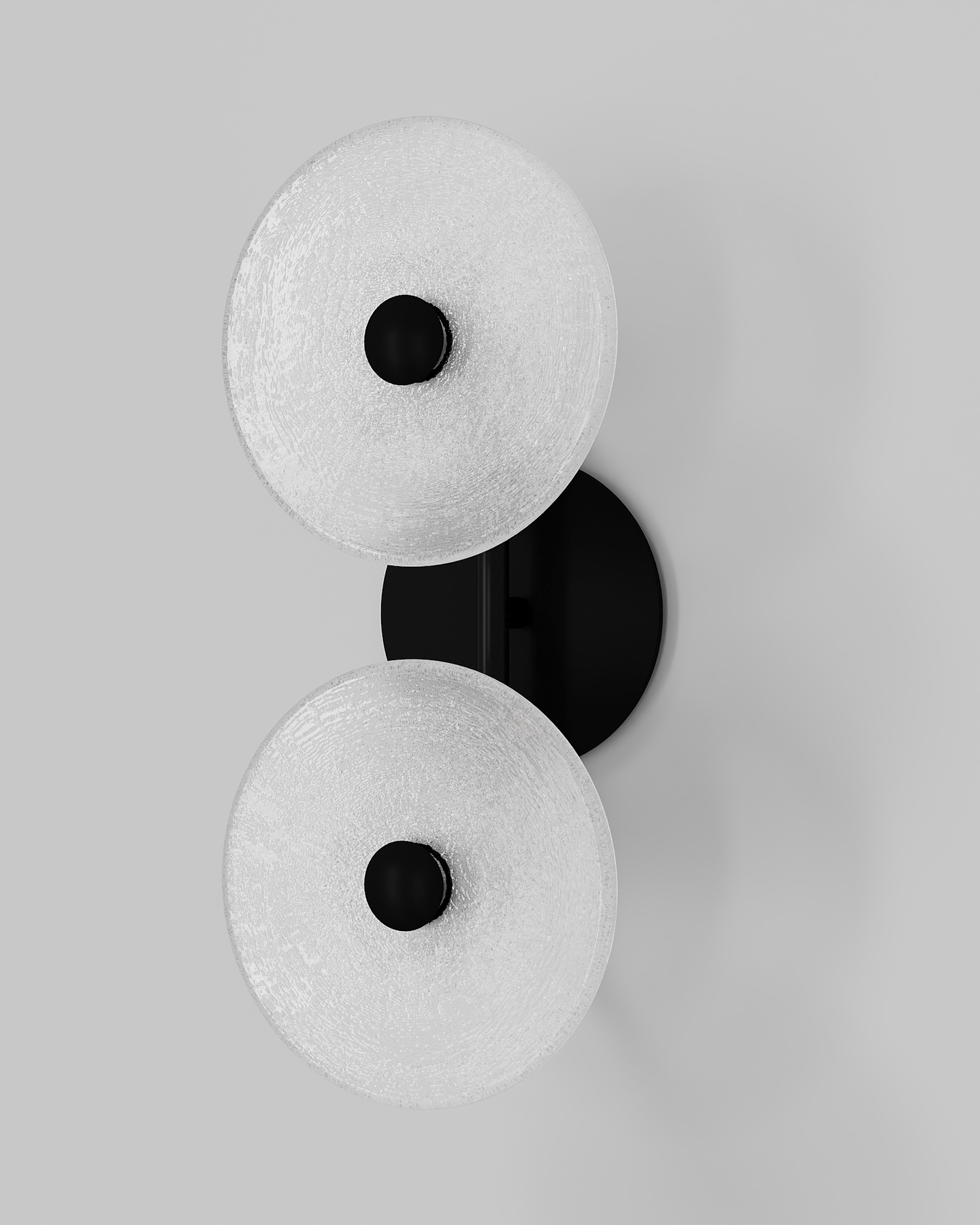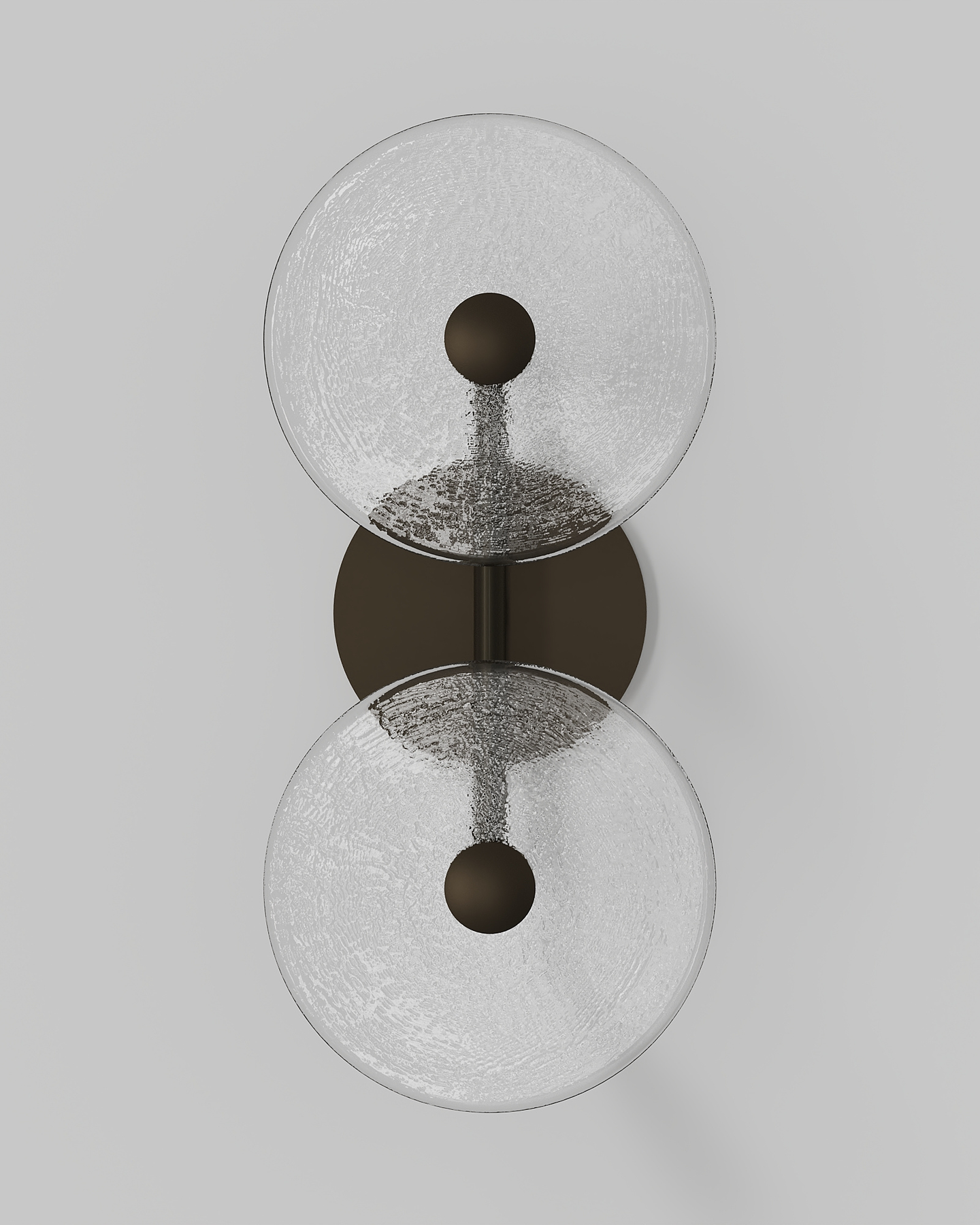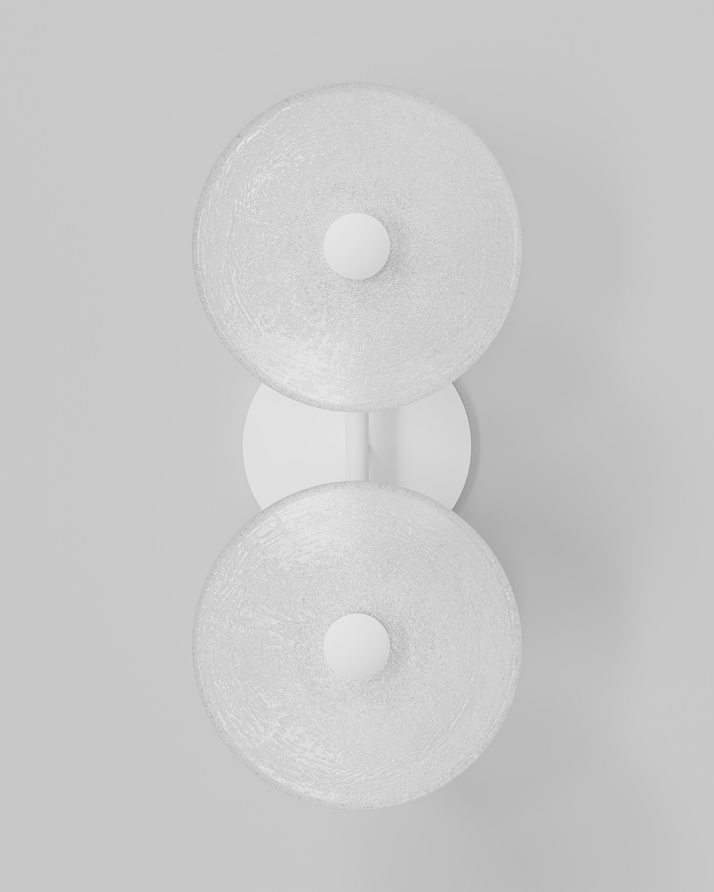 The Coral Duo Rod Wall Light, crafted and designed in Currumbin, Australia is a unique fitting made from two glass discs, mounted perpendicularly to a sleek rod. Available in Brass, Matte White, Matte Black, Steel and Medium Bronze, this fitting is versatile and suitable for a variety of contemporary interiors. Install a frosted glass fitting above a bedside table for a soft diffused light, or use the clear glass versions in clusters in a hallway for a more direct light.