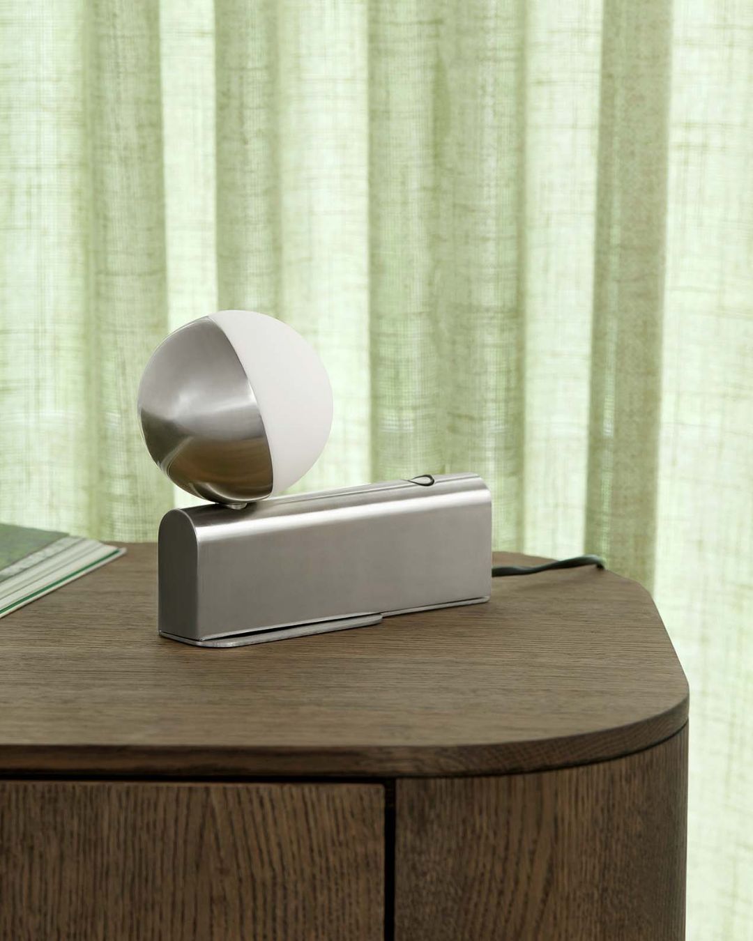 Its rectangular column neatly conceals all electrical components and mounting details, while the mouth-blown opal glass shade rotates to direct light precisely where needed. A discreet 3-step touch brass dimmer allows effortless control, adapting the lamp to your changing needs.