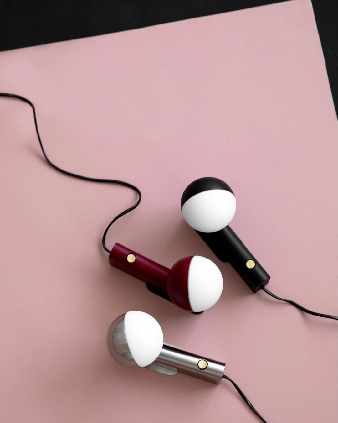 Easily transforming from a wall lamp to a table lamp using the included magnetic metal plate, the Geometric Lamp is available in matte black, steel, or red finishes.