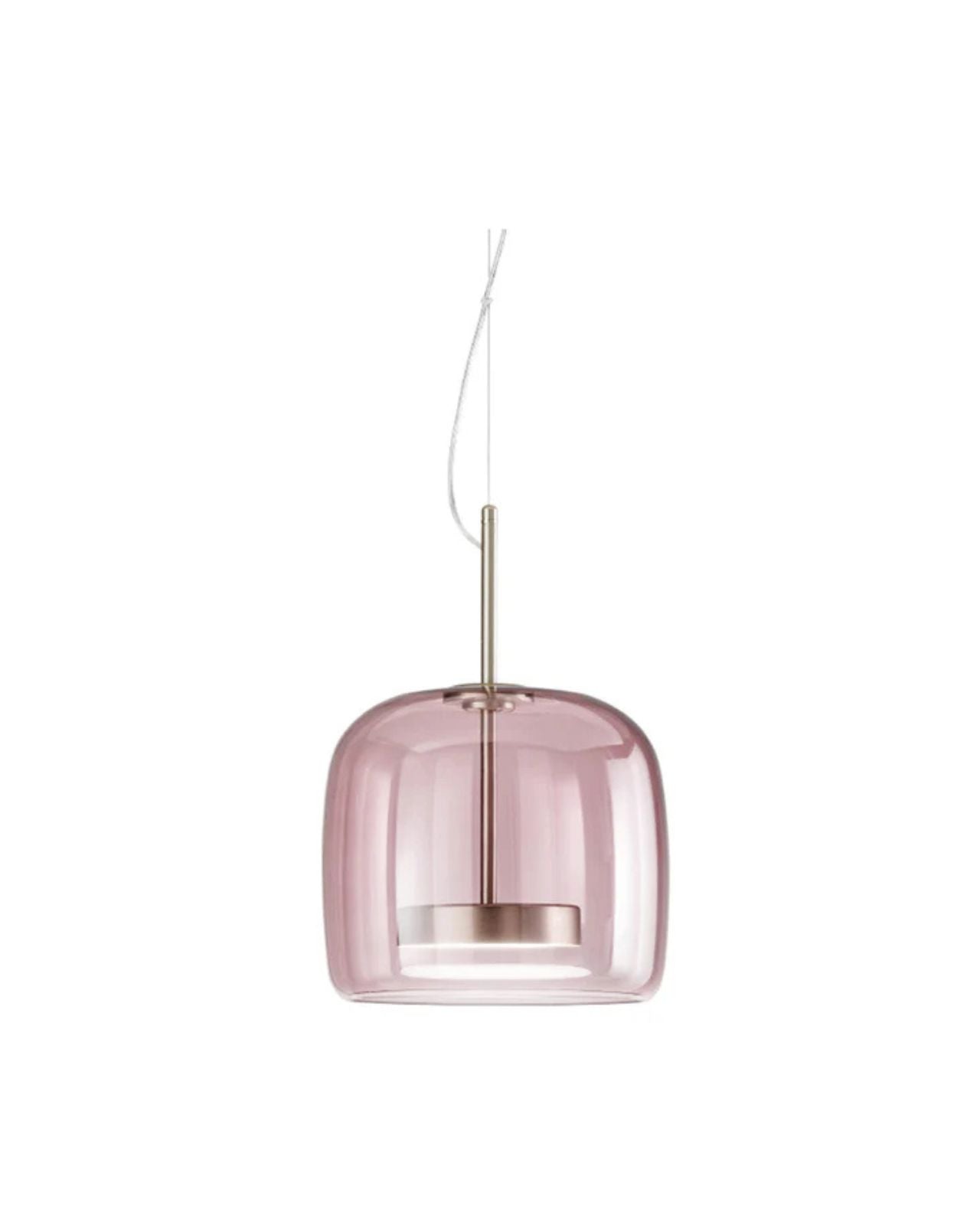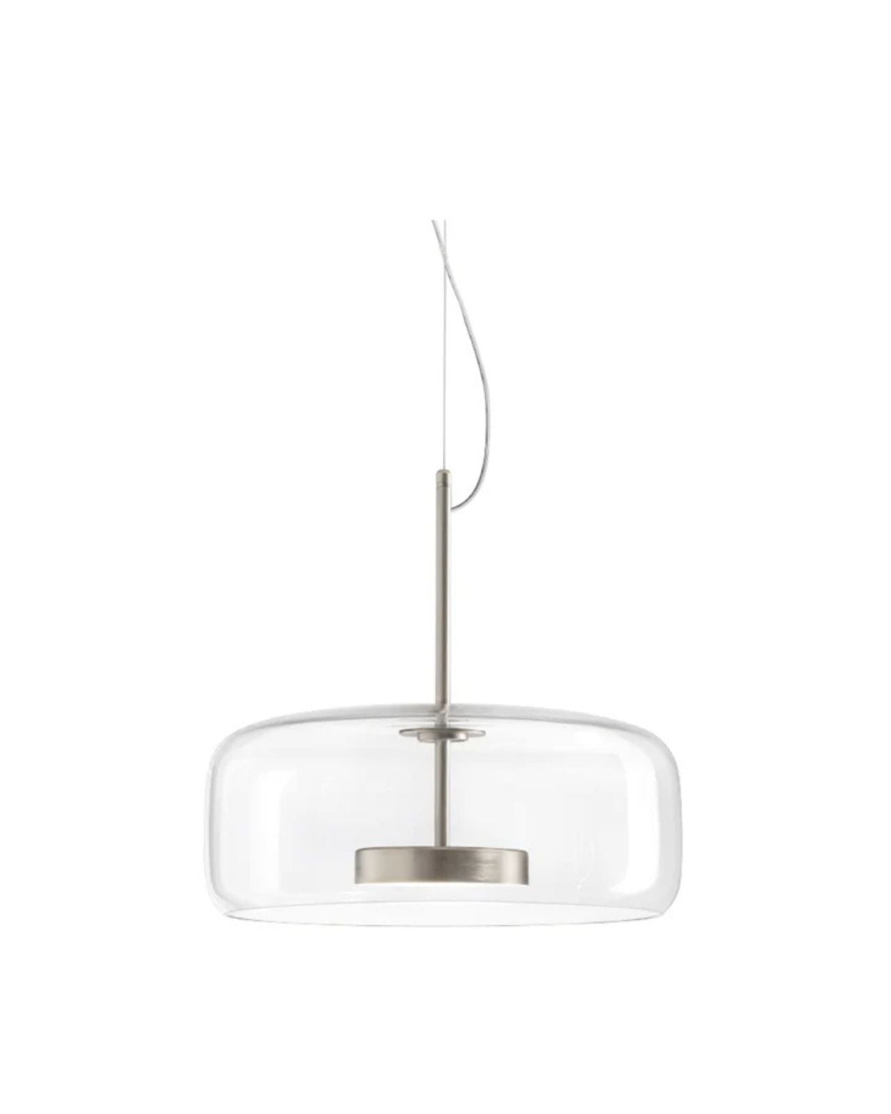 This unique and eye-capturing pendant is derived from the union of two mouth-blown Murano glass pieces from Italy that create an overlapping effect with a stunning retro charm. A waterjet cutter has perforated the glass with large diameter holes which allows the fusion of the glass to integrate perfectly, allowing two classes to seamlessly look like a single piece. This piece is Essential and provides a delicate and soft sinuous feel to your space. The LED light source produces a widespread and powerful light.