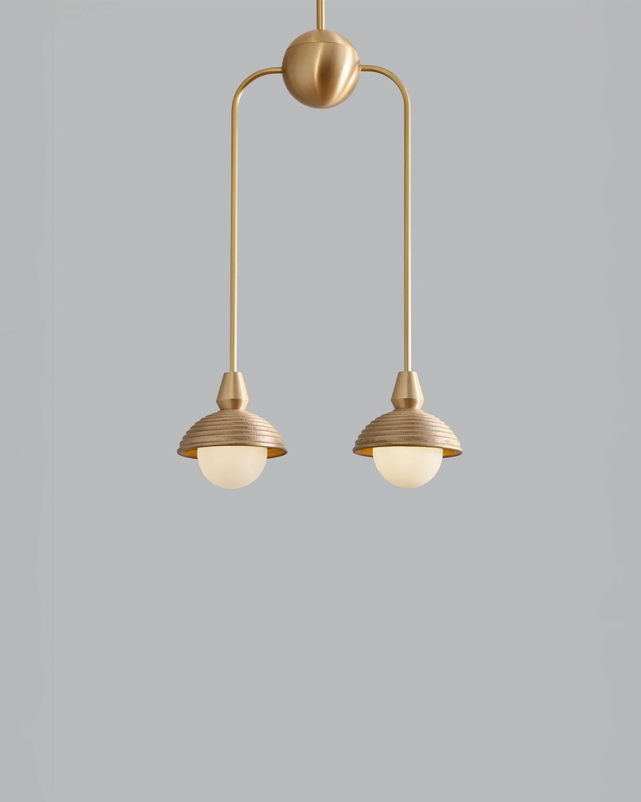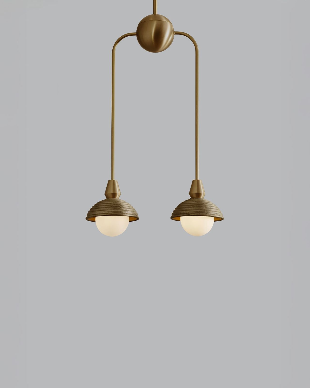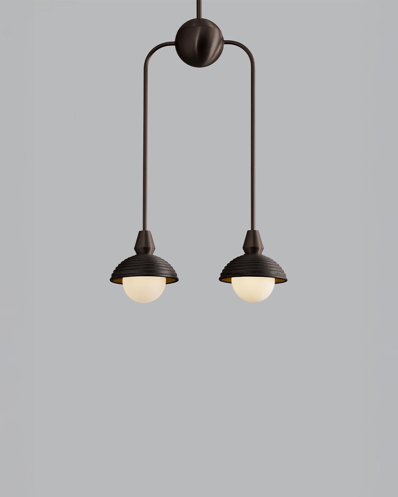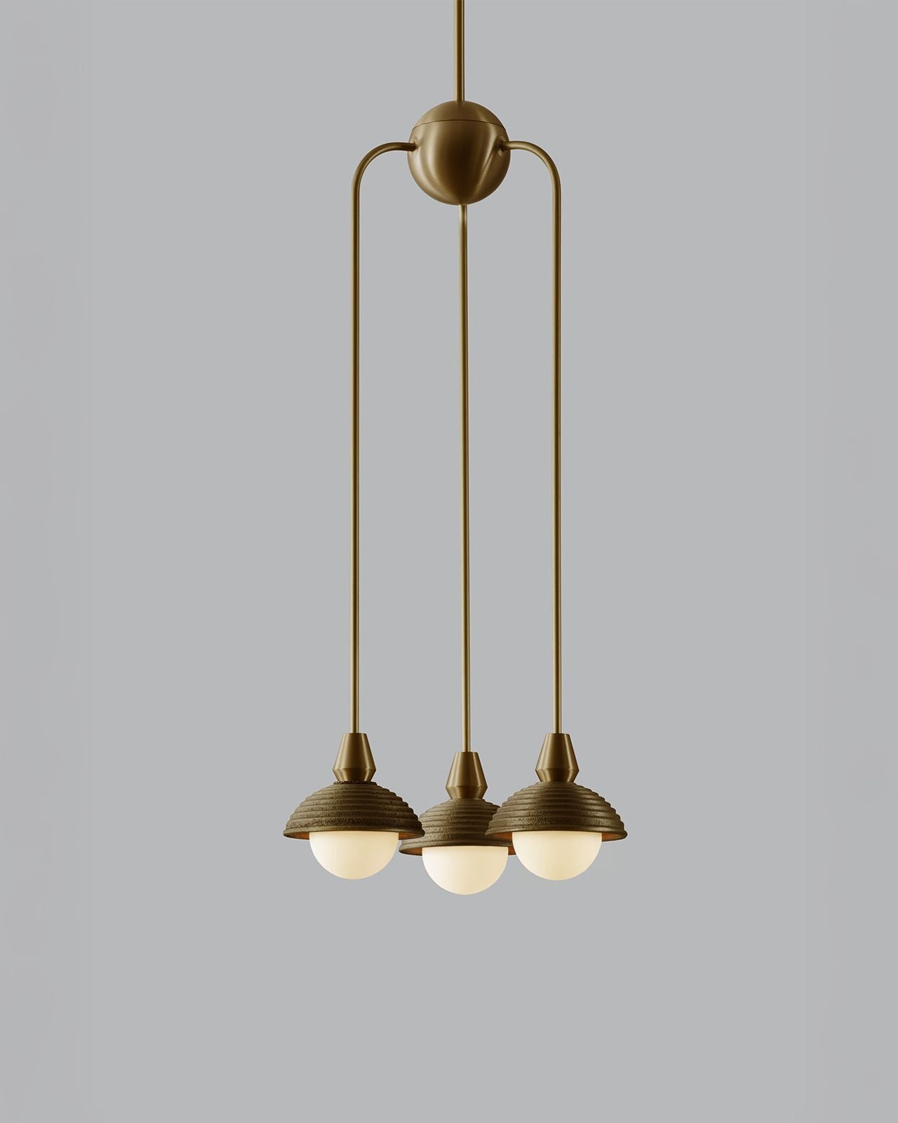 Hand-crafted in England, this pendant combines traditional sand-casting techniques with finely executed CNC-machined brass components. The softly textured cast metal shades contrast elegantly with crisp metallic detailing, while opal glass diffusers provide a warm, evenly dispersed light. Available in a selection of rich metal finishes, the pendant brings a timeless yet modern character to interiors, whether used as a singular statement or repeated rhythmically through a space. This fitting is ideal for mid-century modern and modern classic interiors.