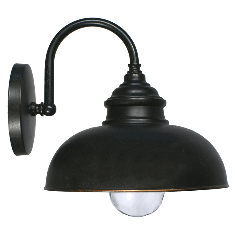 This Vintage Styled Parkway Wall Light is an elegant fitting. With its rounded arm and curved shade, this light is well suited to suit traditional and country-styled spaces. With an IP44 rating, install under protected exterior areas, such as a patio, verandah or next to a front door. Pair with a filament bulb to add the the vintage look.
