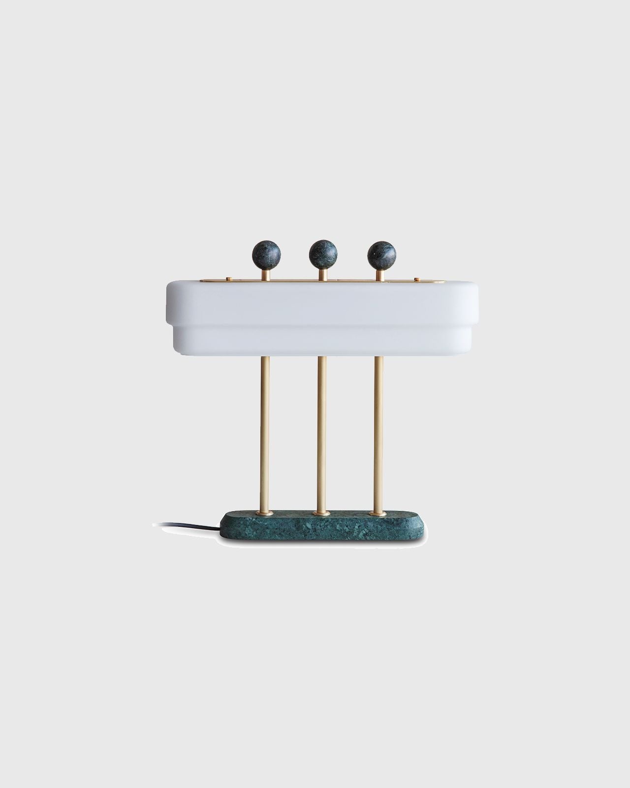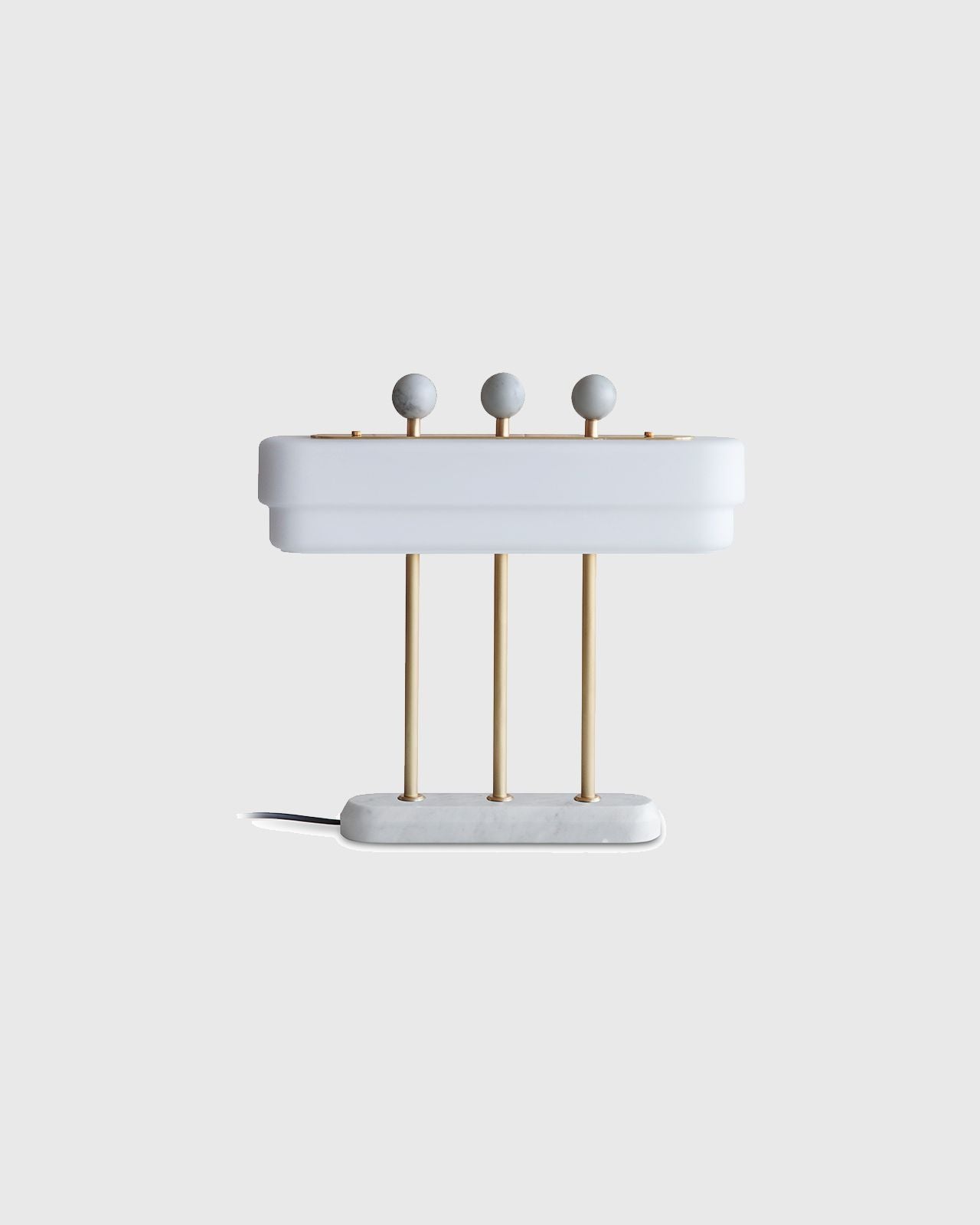 Inspired by jewel-like combining luxury elegance, this Lamp will be an eye-catching piece when displayed in your interior space. Art-Deco design inspired, the Etched Opal Glass Table Lamp features soft opal glass, and solid brass metal work and is finished with suspended luxurious marble spheres, to elevate your space through an artist statement when displayed in living rooms, an office desk or on an entry console table.