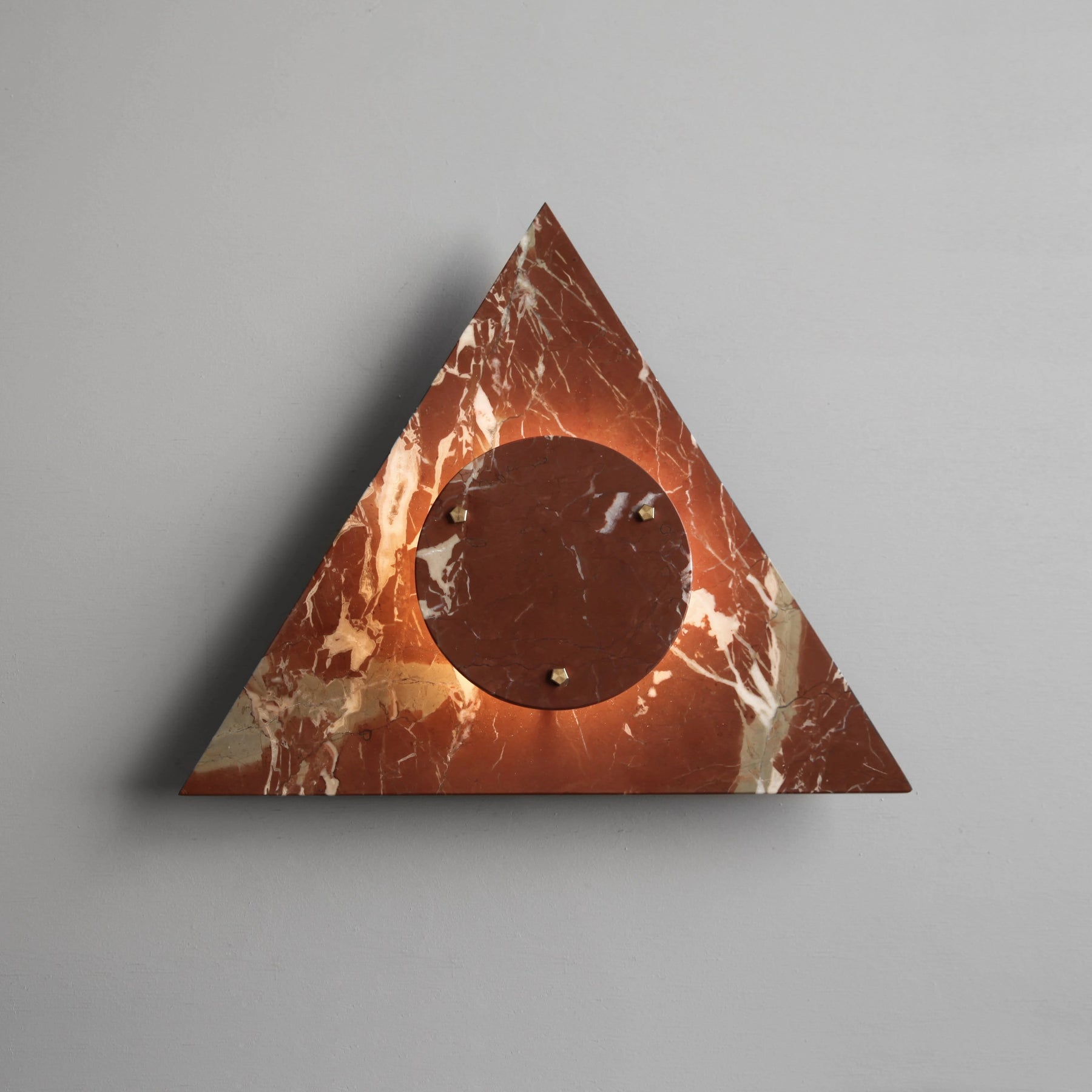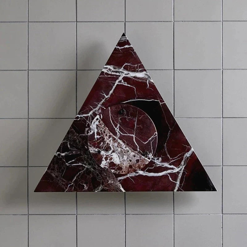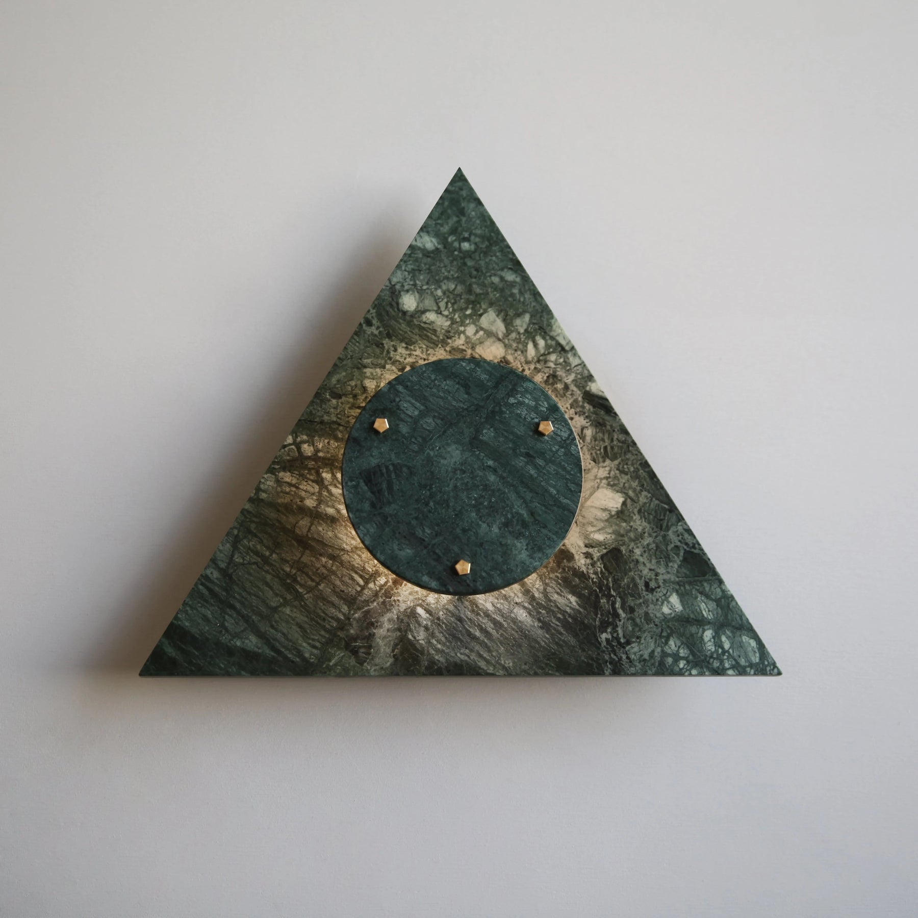 The Bermuda wall light is a contemporary LED lighting design available in two marble hues, Plum, Moss and White. The equilateral form allows the design to be infinitely tessellated to create an impressive centrepiece installation, when in use and when switched off. The modular designs pay homage to the quality and characteristics of raw materials. The natural colour or vein variations in the marble make each piece truly unique. Bermuda can be displayed as a wall-mounted sconce or pendant lighting.