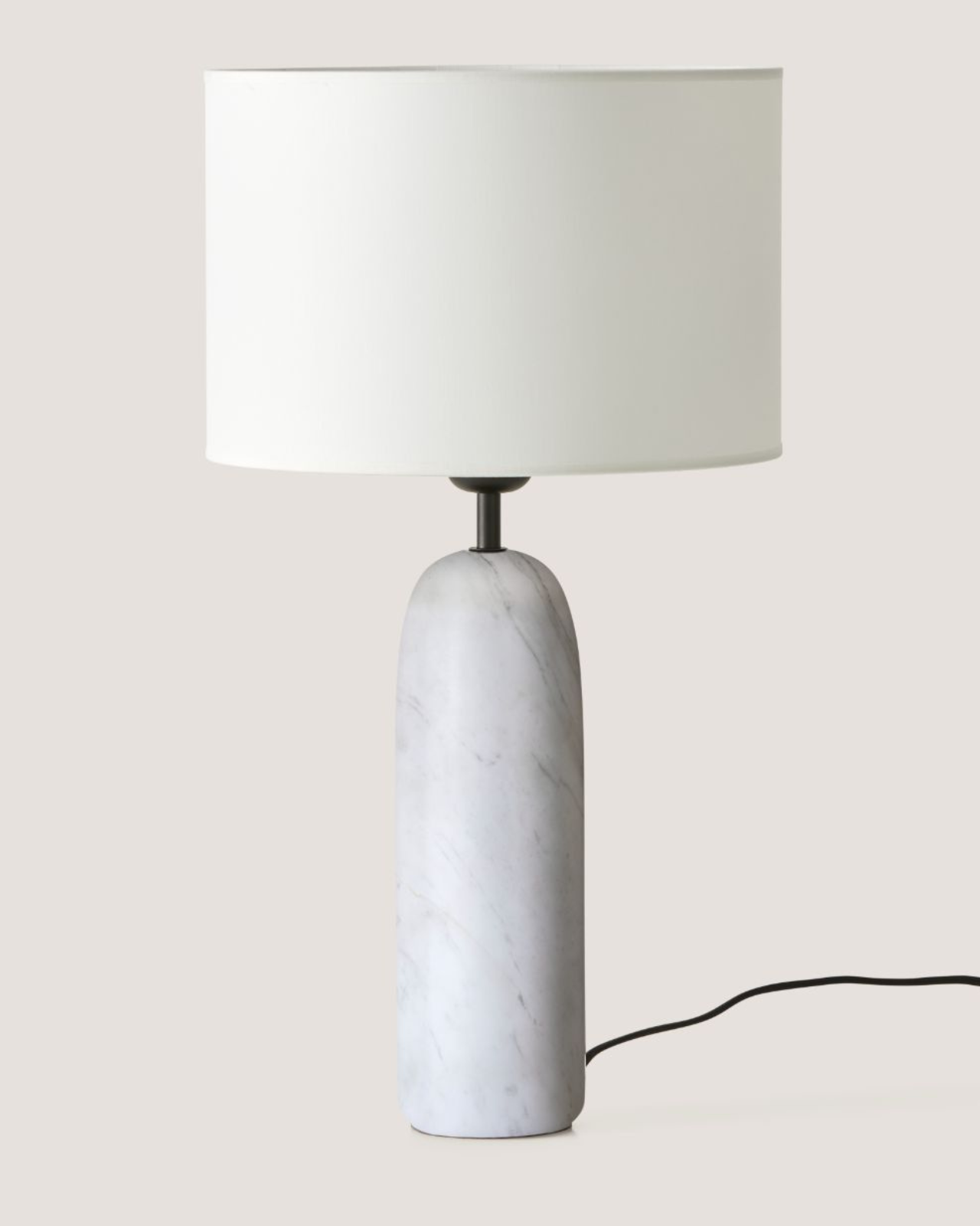 This table lamp combines effortless elegance and refined minimalist design. Featuring a high-quality marble base avalible in either a white or black marble finish, this design is paired with a white linen drum shade. A lamp that is perfectly suited to be placed beside the bed, on a hallway console or upon an office desk.