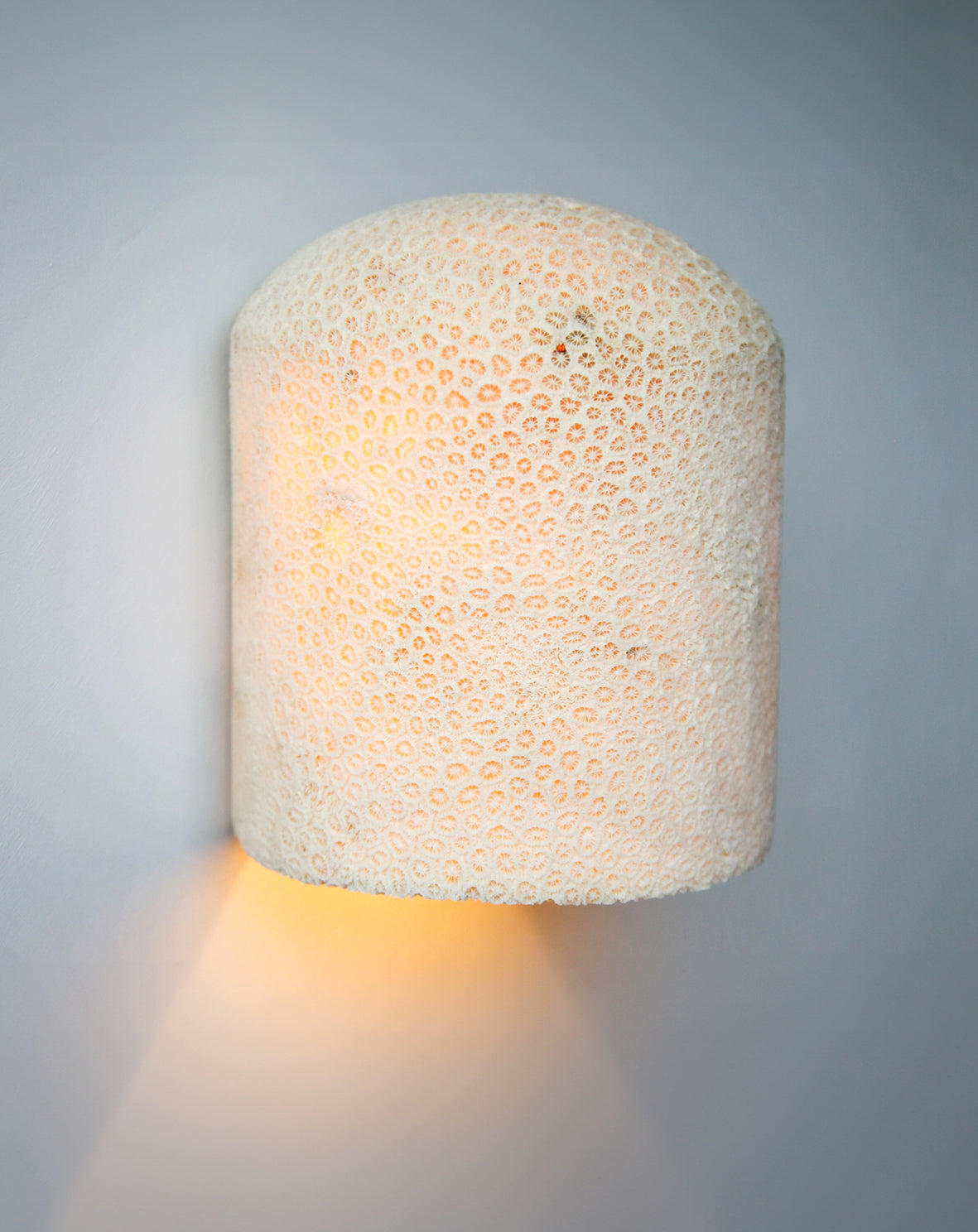 Introducing Marovo Island Traders' Fossil Coral Dome Flush Wall Sconce - a radiant homage to nature's serene beauty and timeless allure. Crafted from the finest Fossil Coral, naturally moulded over countless years and sustainably sourced from the Solomon Islands. This exceptional lighting fixture infuses a touch of rustic elegance into any space. Each piece, showcasing the stone's distinctive character, serves as a truly organic addition, celebrating Earth's rich geological history and sacred geometry. Illuminate your space with the inviting warmth of coastal living, courtesy of this captivating piece. It's not just a light; it's a reminder of the remarkable stories told by nature and a tribute to the authenticity of coastal living, offering a radiant glow to your surroundings.