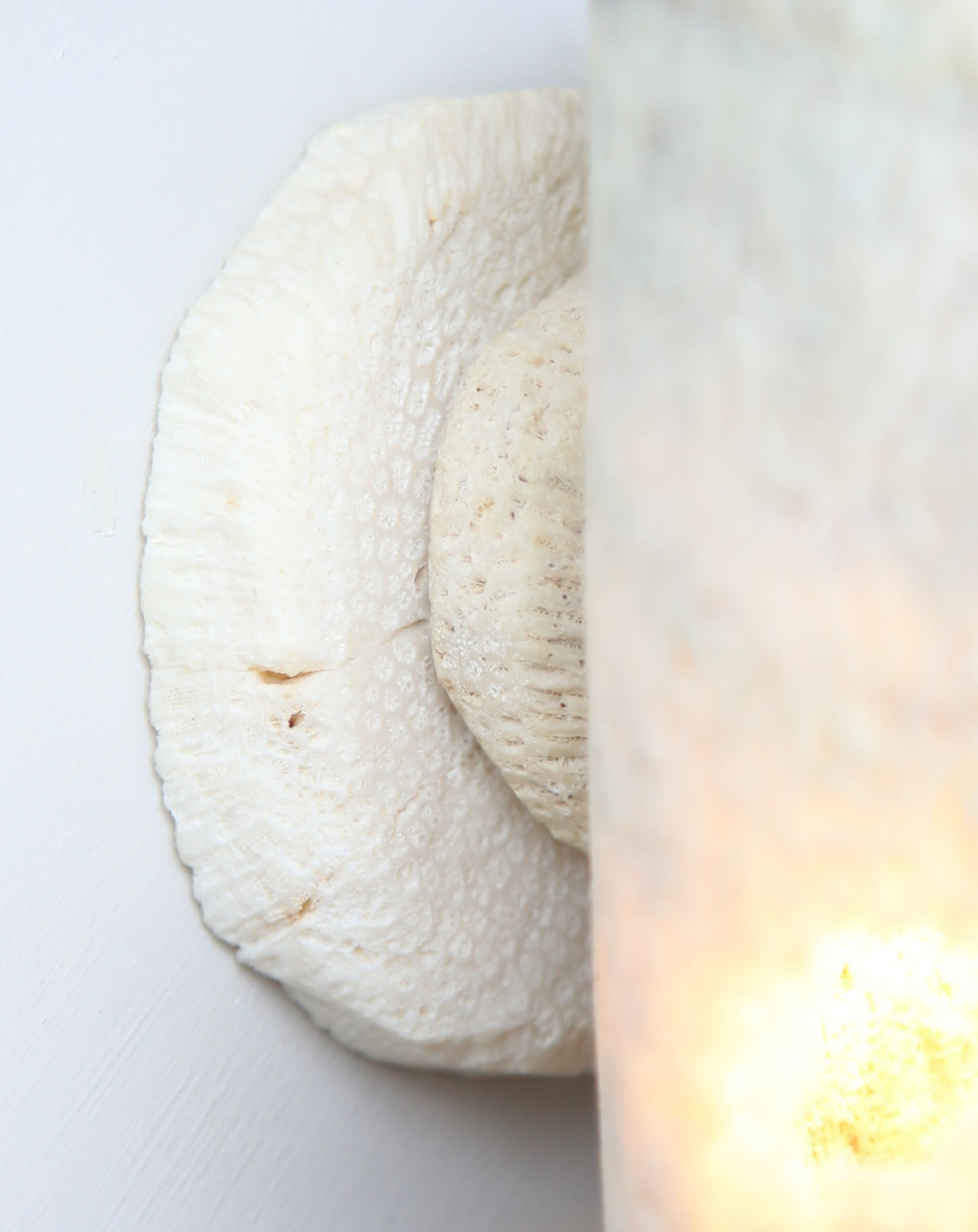 Introducing Marovo Island Traders' Fossil Coral Dome Wall Sconce - a homage to nature's serene beauty and timeless allure. Crafted from sustainably sourced Fossil Coral, a natural stone, moulded over countless years, this exceptional lighting fixture infuses a touch of rustic elegance into any space. Each piece, showcasing the stone's distinctive character, serves as a truly organic addition, celebrating Earth's rich geological history and sacred geometry. Illuminate your space with the inviting warmth of coastal living, courtesy of this captivating piece. It's not just a light; it's a reminder of the remarkable stories told by nature and a tribute to the authenticity of coastal interiors.