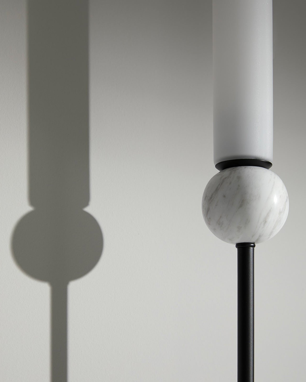 This minimalist design showcases a tubular form made from a combination of metal, marble, and opal glass. Its sleek opal shade appears to balance on the fitting's decorative marble sphere and houses a G9 LED.  Providing a soft warm glow the Minimalist Tubular Tall Wall Light is suited for hallways, living areas, and retail or office spaces. Available in Old Gold and Black Marble or Matte Black and White Marble this wall light has been designed to suit a range of styled interiors.