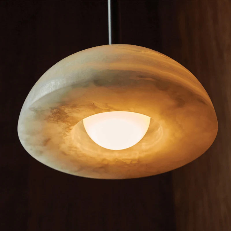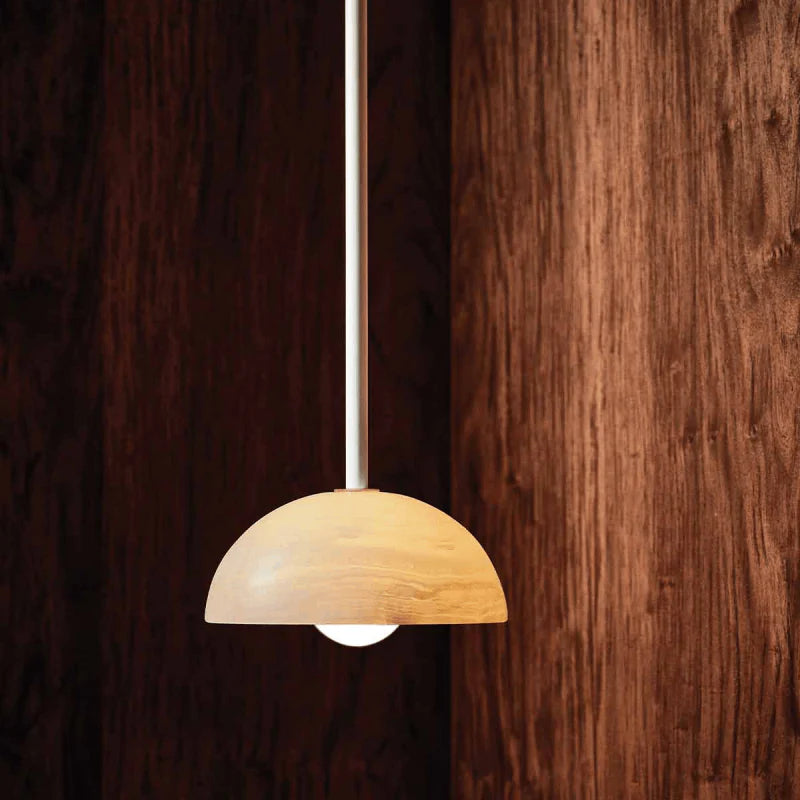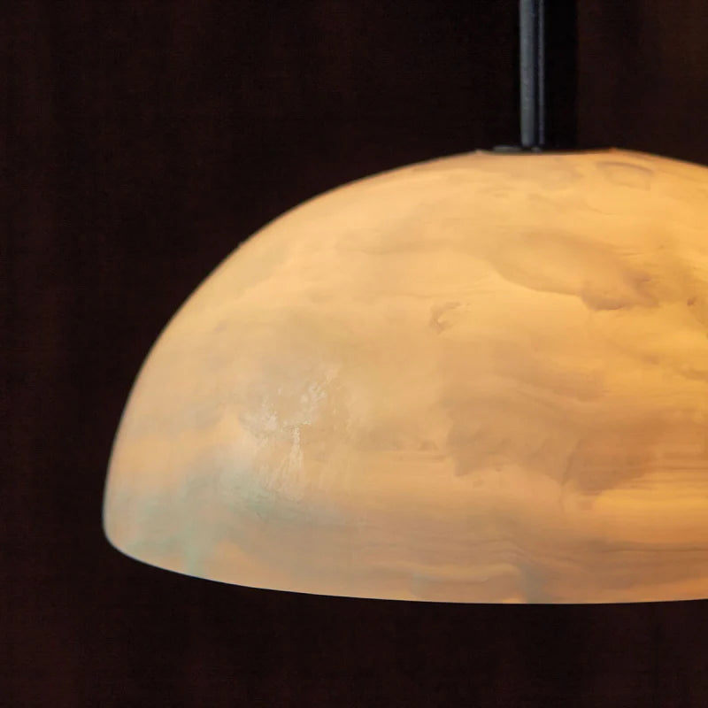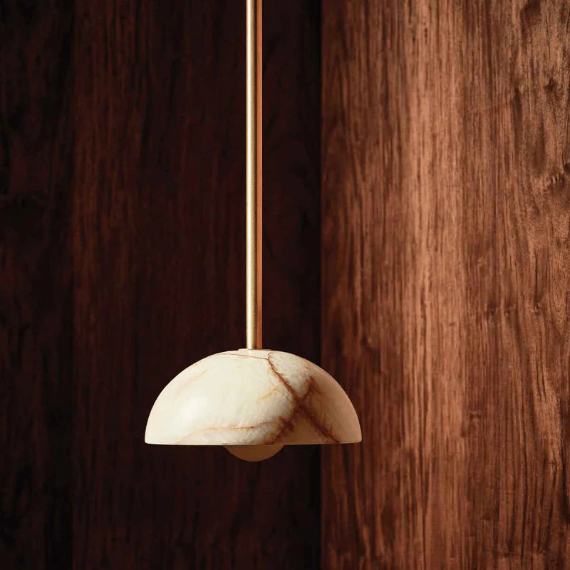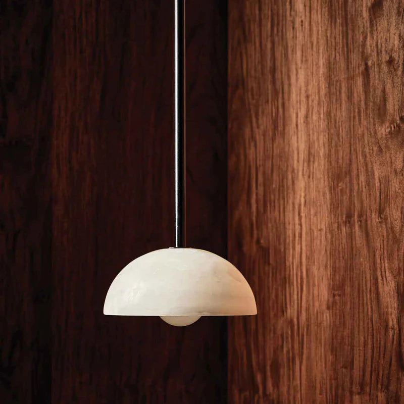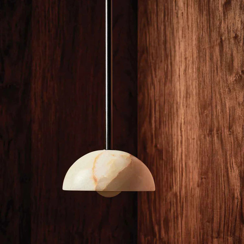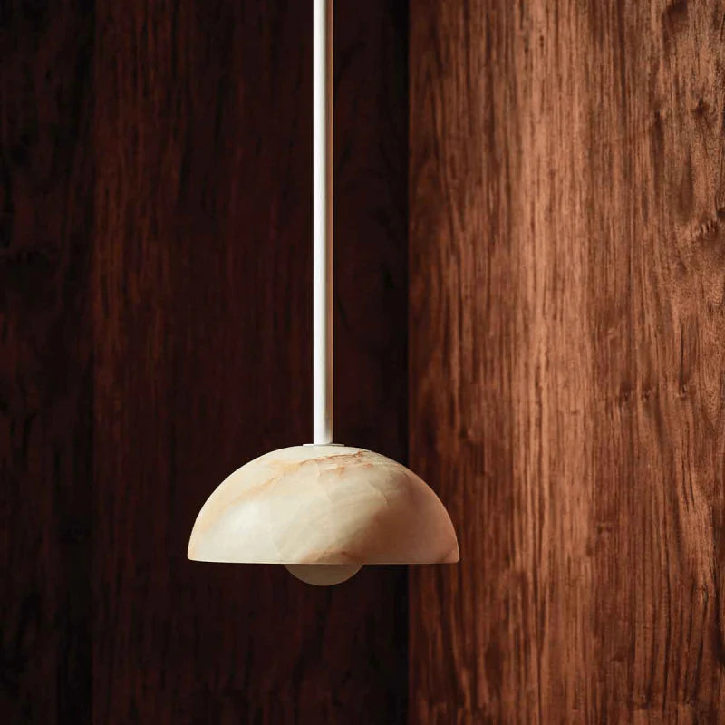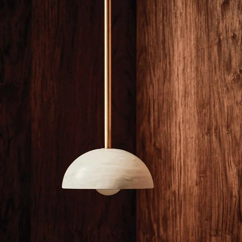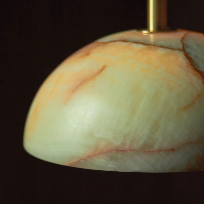 Combining the style of a chandelier with contemporary and classic elements, this IP44 rated pendant is designed and hand-assembled in Byron Bay and will make a statement over a dining table, in a bedroom or in a reading nook. Suspended by a solid rod available in white satin, brushed black or brass finish, the elegant dome shade is made from white or jade translucent stone allowing both indirect and direct illumination in interiors for a more welcoming and cosy atmosphere.