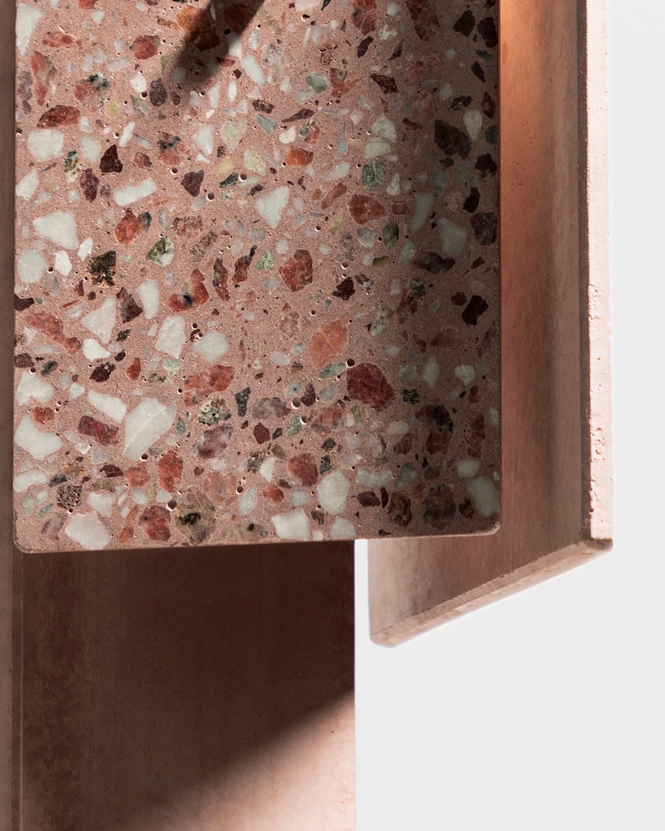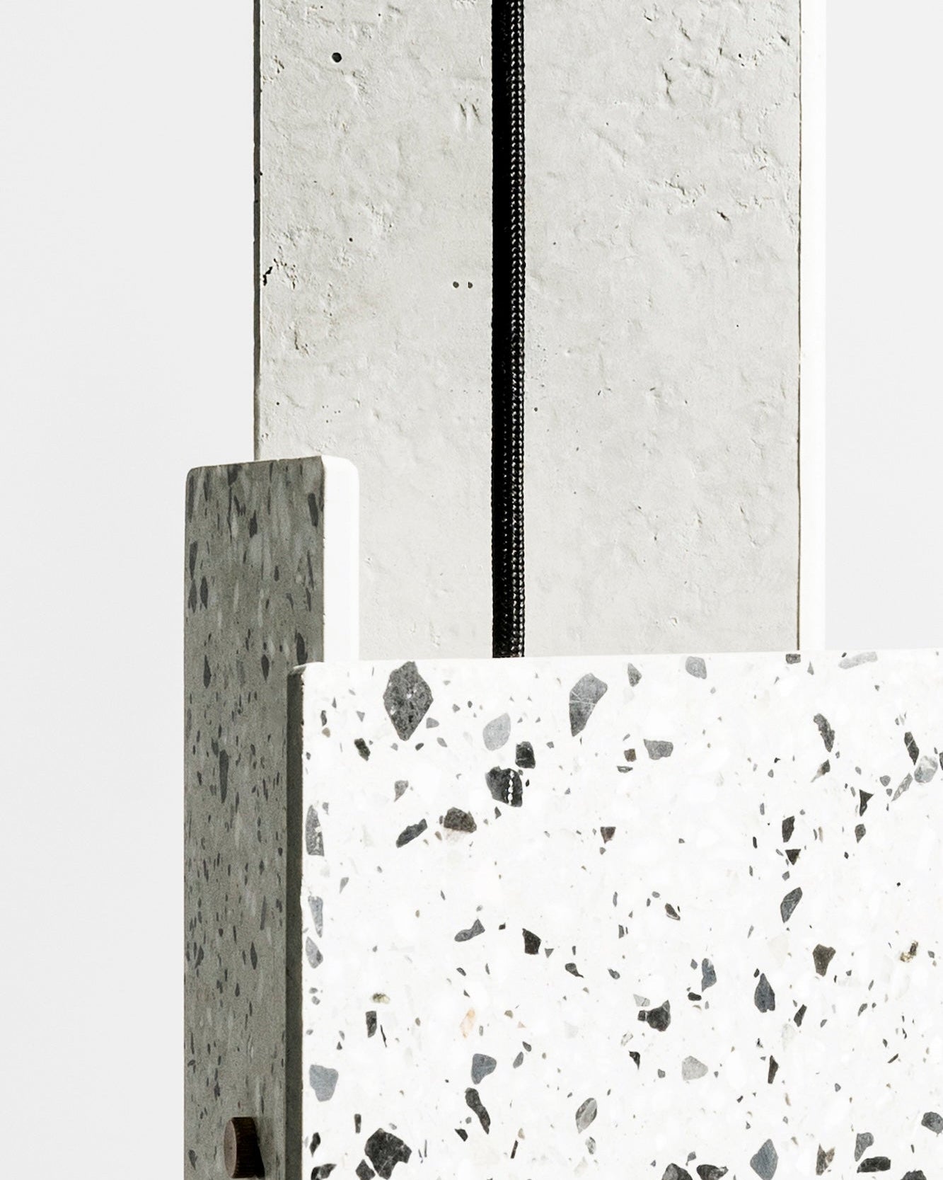 Crafted using recycled stone and ceramic chips, embedded in a durable Ultra-High Performance Concrete (UHPC), this pendant highlights the beauty of repurposed materials. The smooth, polished finish is achieved through meticulous craftsmanship, transforming construction waste into a refined lighting solution.