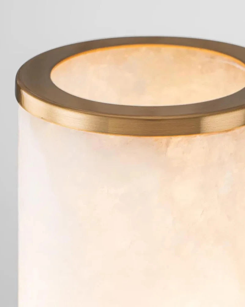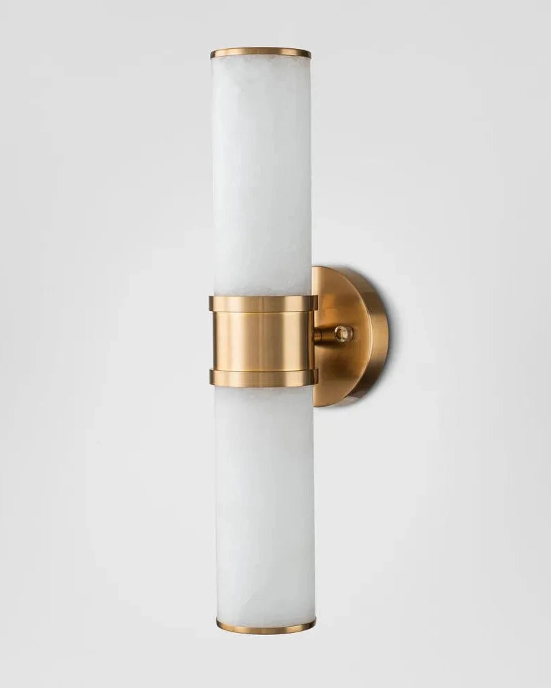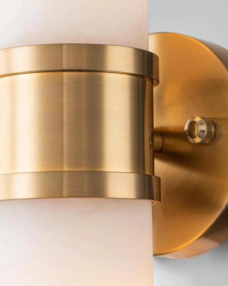 This wall light seamlessly combines the refinement of alabaster with the strength and sophistication of brass, resulting in a sleek and sophisticated design that will complement modern or traditional interiors. This fixture provides evenly distributed warm light in both upward and downward directions, creating a cosy and inviting ambiance.