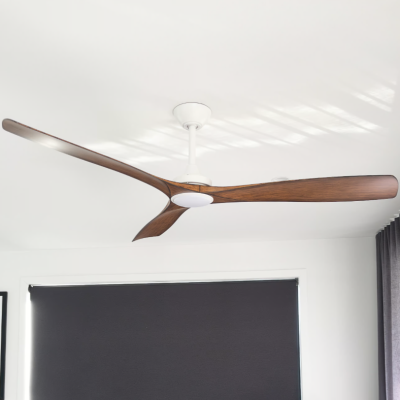Spitfire DC | Contoured Blades Ceiling Fan with White Motor | Walnut With Light