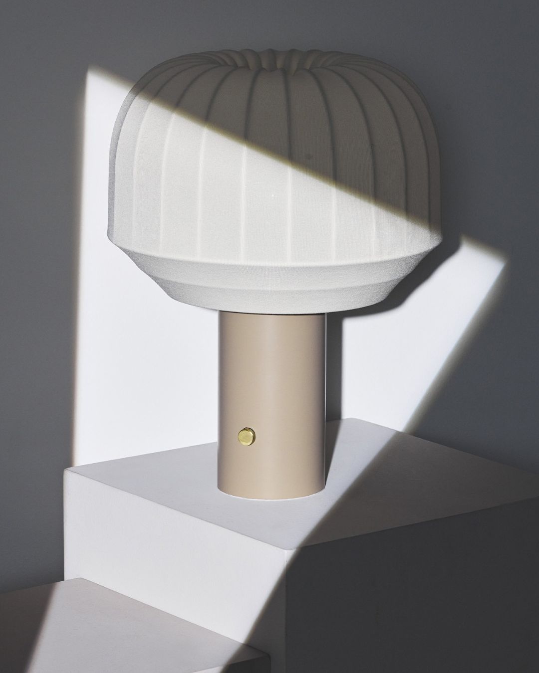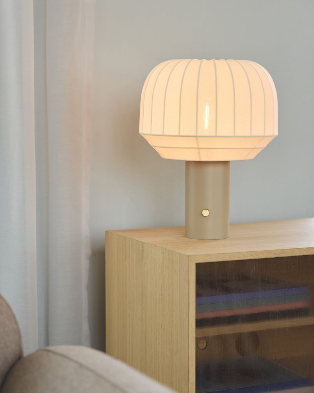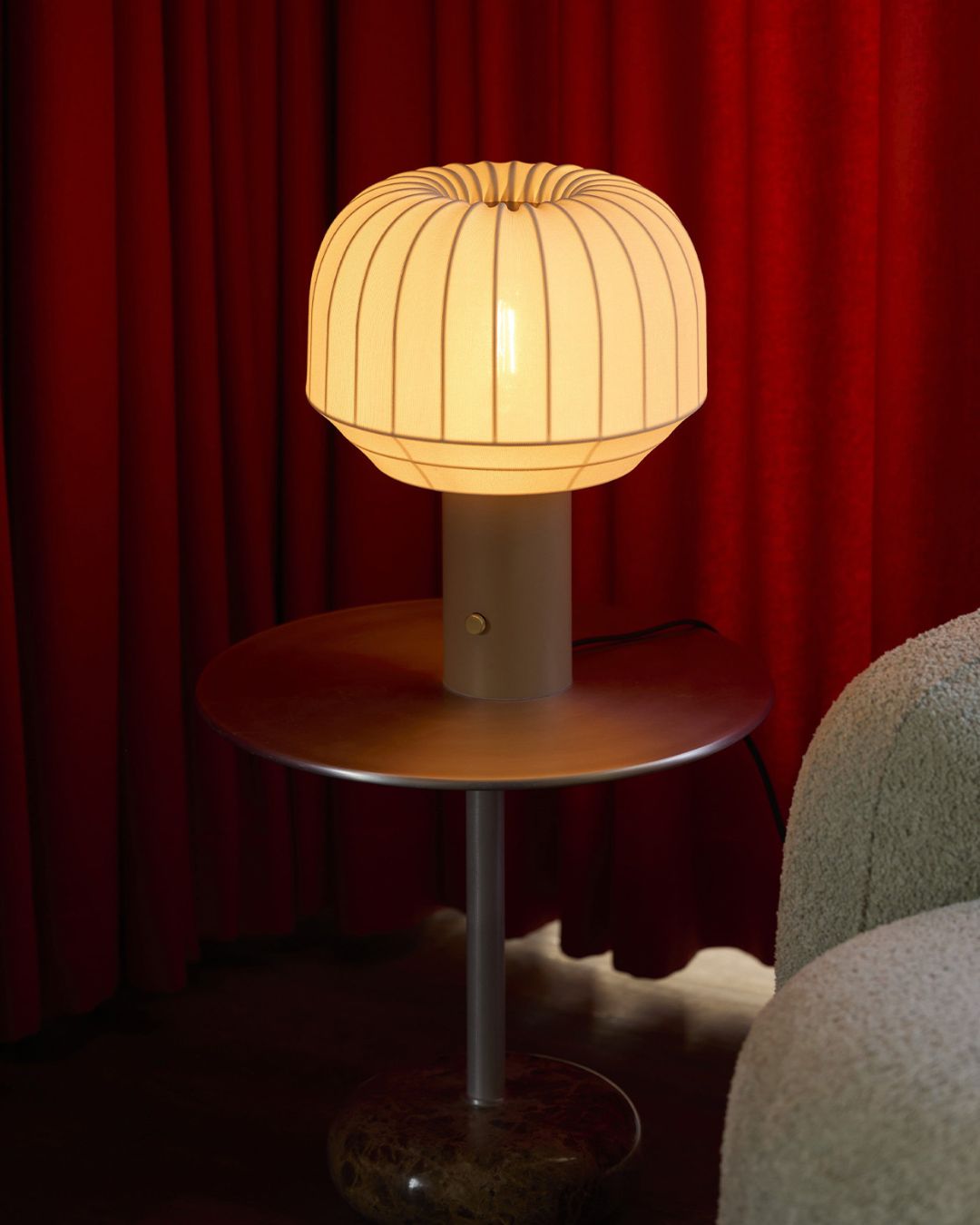 Well suited to contemporary homes and boutique hospitality environments, this table lamp introduces a tactile layer rarely seen in compact lighting. Its combination of fabric, form, and controlled light makes it an inviting addition to spaces that benefit from soft volume and understated character.
