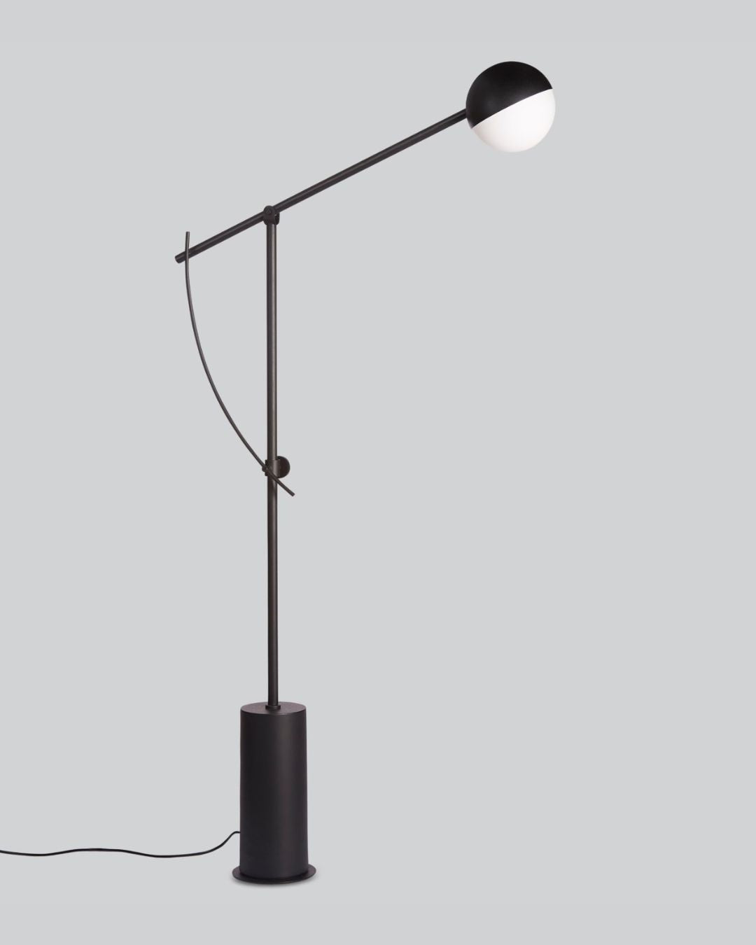 With its sleek matte black design and modern functionality, this adjustable lamp is featured with a pivoting steel arm which can be moved upwards or downwards to provide the desired light effect. Distinguished for its Geometric form and Architectural lines this floor lamp is noted for enhancing modern interiors Providing both diffused and directional light this floor lamp is a showstopper in living areas and office interiors.