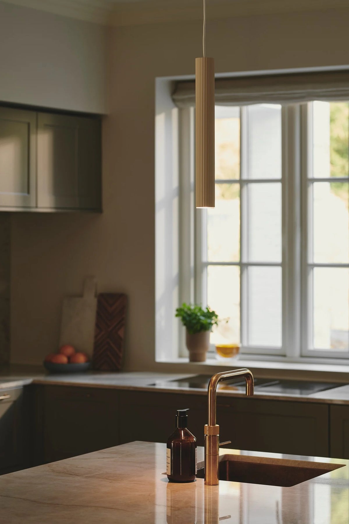 Crafted from high-quality aluminium, the Reeded Metal Vertical Pendant features a sleek, vertical design with a stunning fluted texture to add a level of detail to interiors. Choose from three versatile finishes - the beige option adds a cozy touch, the brown metallic exudes modern charm, and the black finish brings bold contrast to contemporary spaces. This pendant light is perfect for both residential and commercial settings, providing both illumination and a piece of art. Suitable for installation in living rooms, dining areas, or offices.