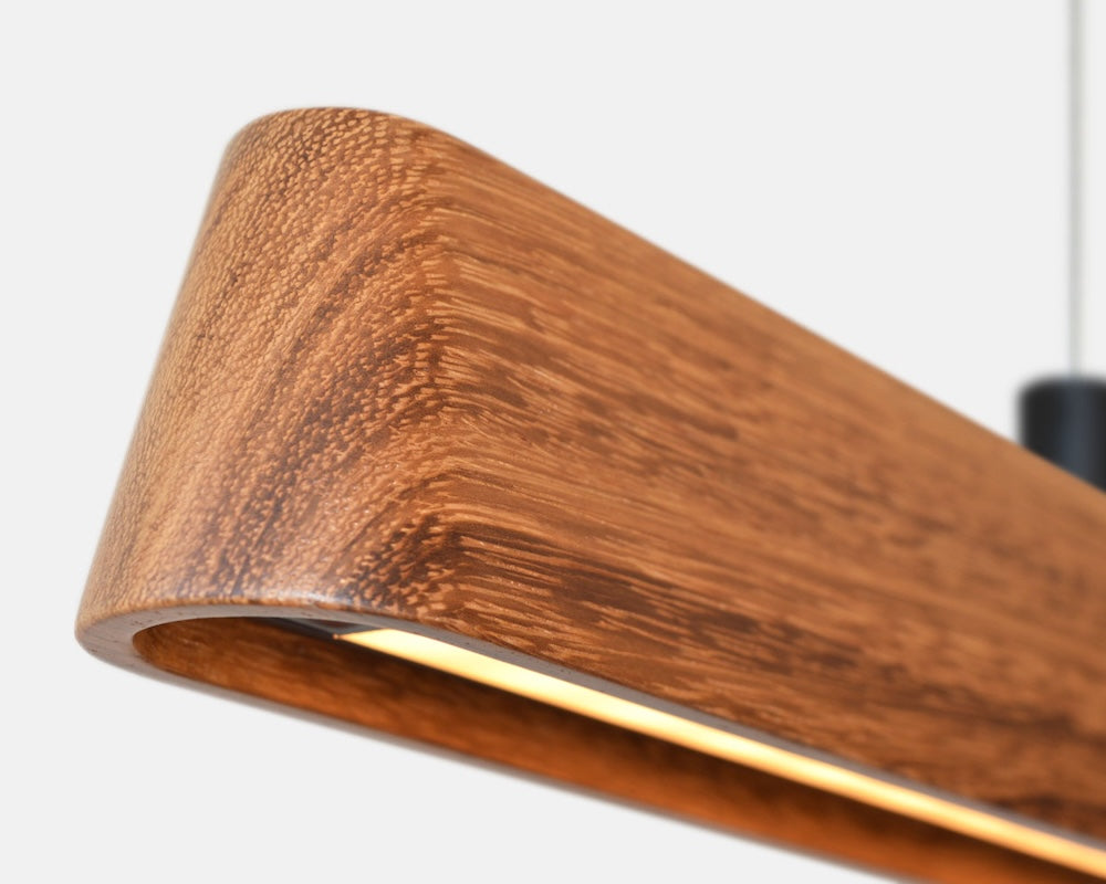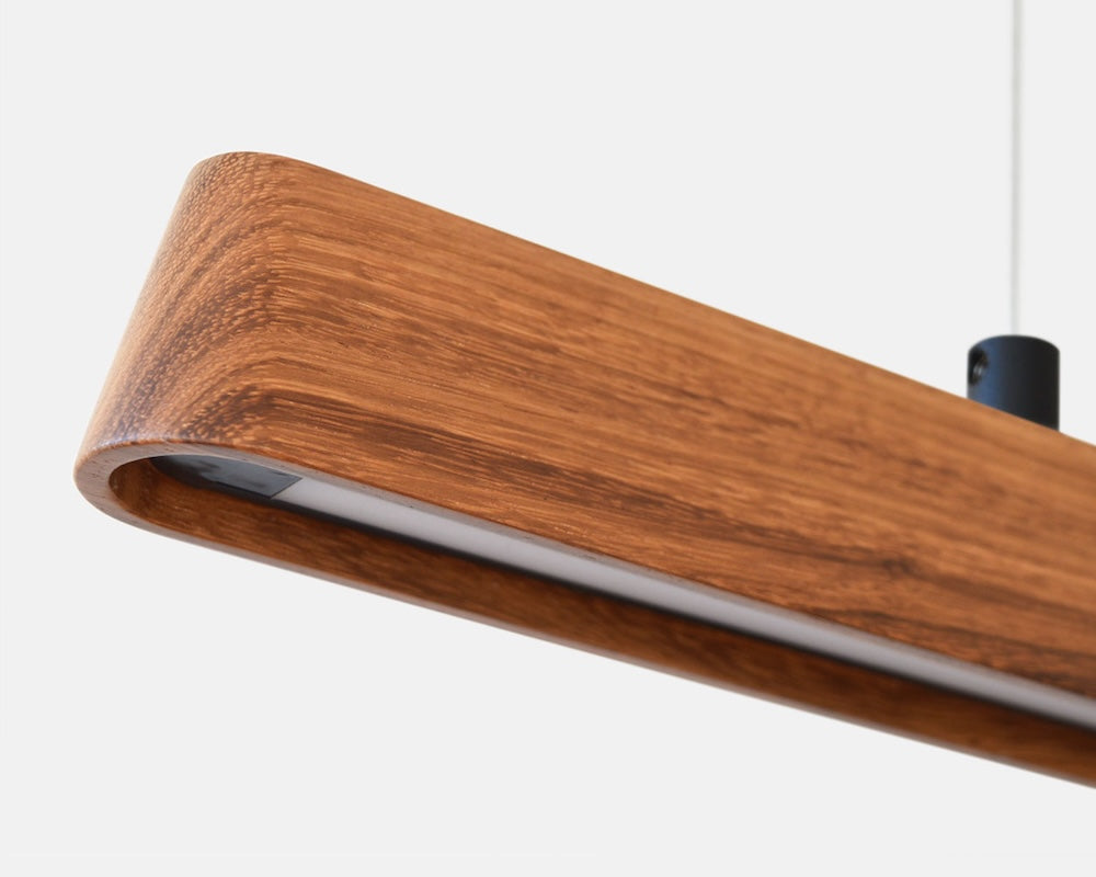 Carefully crafted from high-quality materials this sleek linear consists of a smooth rounded timber form and integrated LED strip. Fluxwood, a small dedicated team of designers and crafters design, manufacture and assemble each linear in Currumbin Australia. Its body made from sold timber is available in Tasmanian Blackwood, Victorian Ash and Spotted Gum and ceiling plate and trimming available in Black or White. A linear that particularly lends itself to suit over a kitchen island, dining table or workspace. This fitting is available in bespoke options.