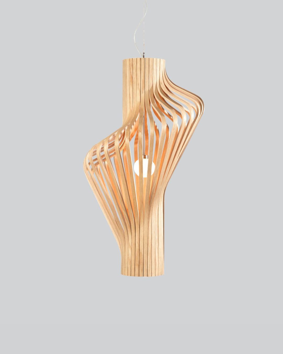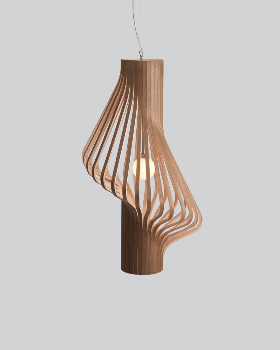 Full of character, this striking plywood pendant is a true statement piece. Crafted in Norway, its bent shade is composed of 32 individual wood strips, carefully shaped by hand using the traditional techniques of Norwegian laminated wood craftsmanship. Oak and walnut are thoughtfully selected for their strength and flexibility, allowing the shade to form graceful, sculptural curves.