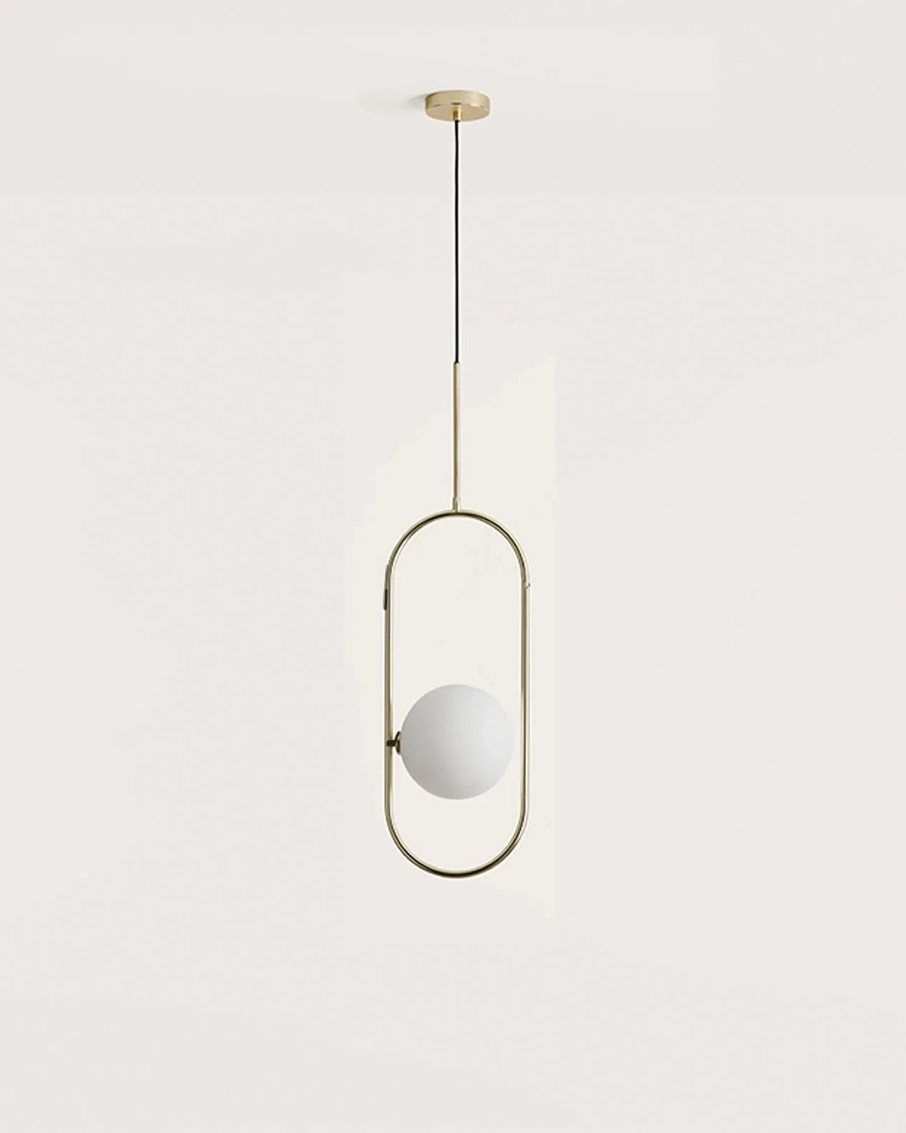 Spherical Opal Glass and Brass Pendant In Warm Styled Interior - Lighting Collective