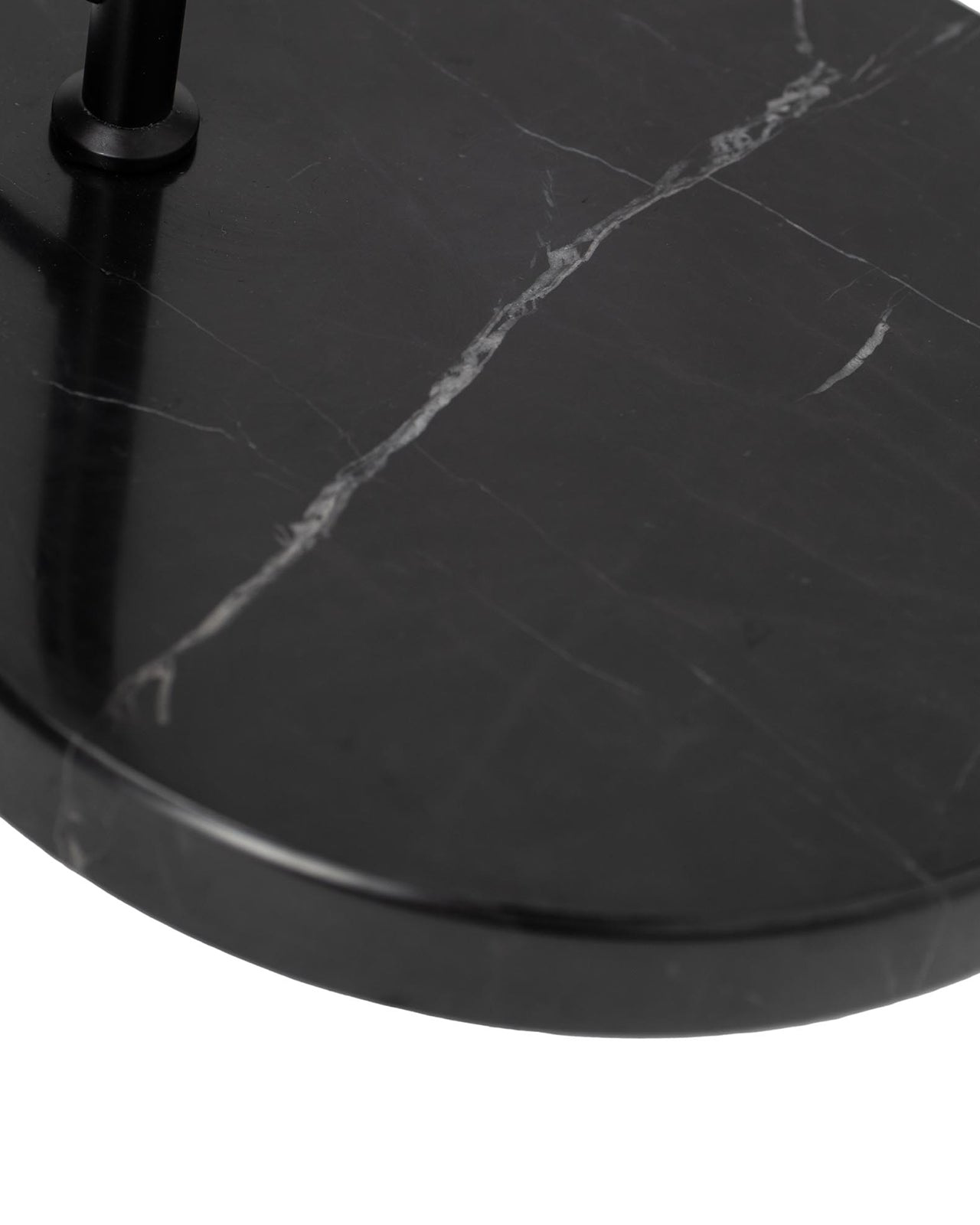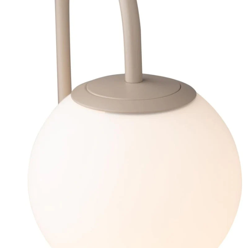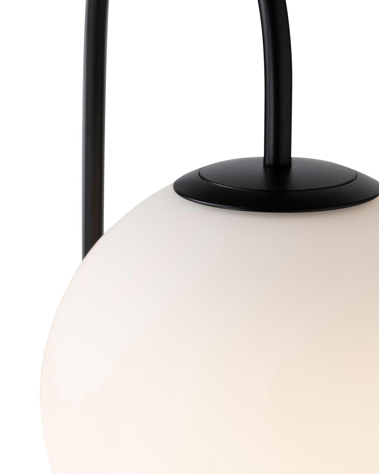 Featuring a curved metal frame and travertine base this floor lamp celebrates contemporary design. Its travertine material gives this light a terrestrial touch to enhance interior spaces. Paired with a frosted orb shade this lamp will add soft diffused light to living areas and bedrooms. Featuring a foot-on/off switch this floor lamp is to be paired with an E27 globe (not included).