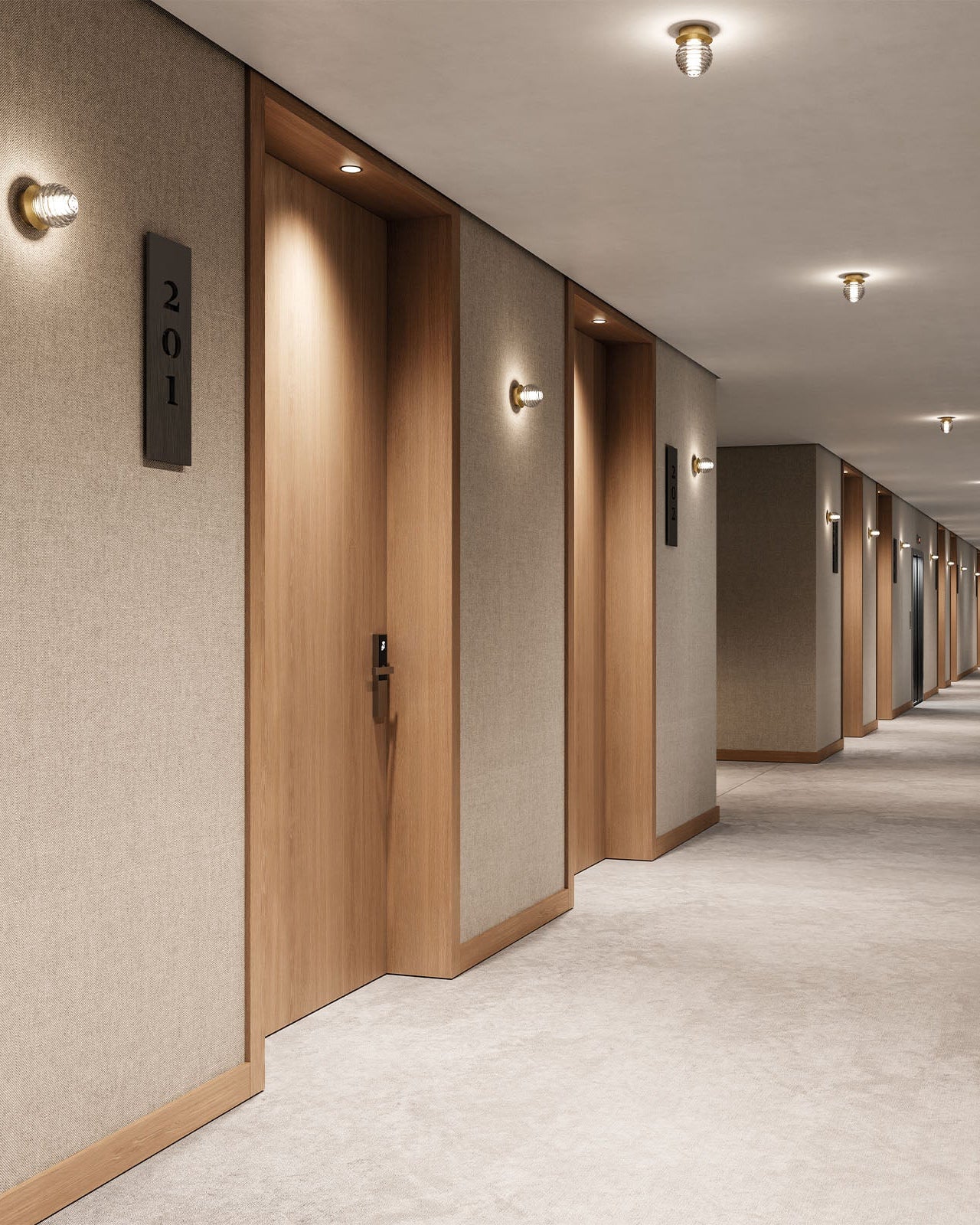 Delicate Ridged Glass Spherical Wall or Ceiling Light Installed on a hotel wall and ceiling