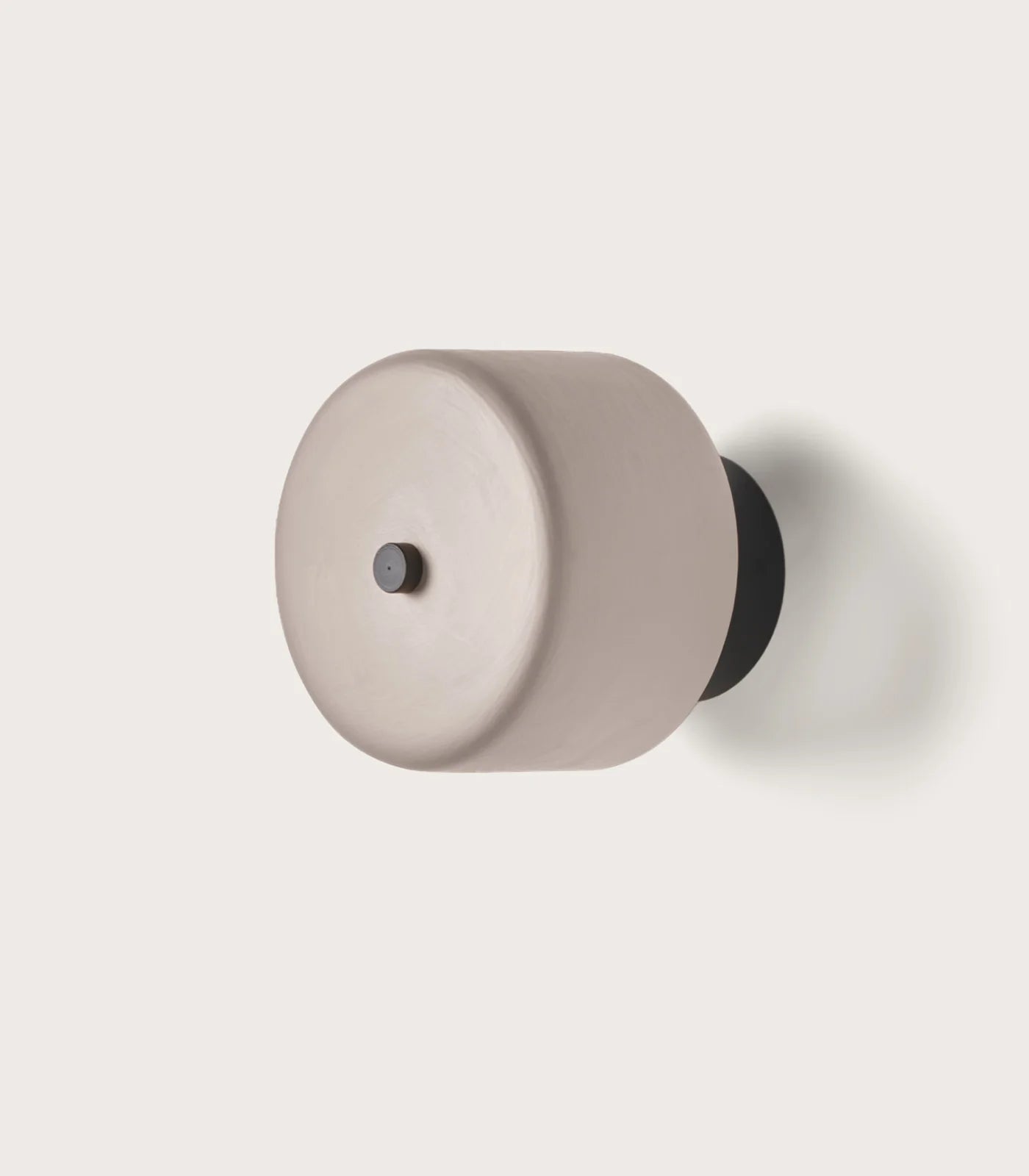 The Compact Cylindrical Ceramic Wall Light will elevate a living room, a bedroom or a hallway. By enhancing the interior space, this wall light will set a warm ambient and calm atmosphere. Featuring a compact cylindrical shade with smooth contours, it is crafted from ceramic and hand-painted in a nude or vintage brown finish. Minimal yet contemporary, this fixture also comes with a few black metal accents adding some elegance to it.