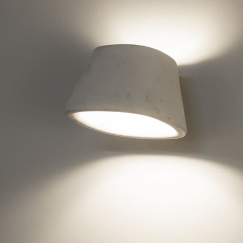 Designed and handcrafted in Tuscany, Italy, this wall light features an organic shape and is intended to give an up-and-down LED illumination. IP55-rated, this fixture is highly resistant to the environment and is ideal for outdoor spaces such as patios, entrances, or pathways. This design will effortlessly blend into modern and Mediterranean settings. Available in natural Galestro clay, white, black Galestro, grey, cortex, or Schwarz finish and will help create a cosy and warm atmosphere.