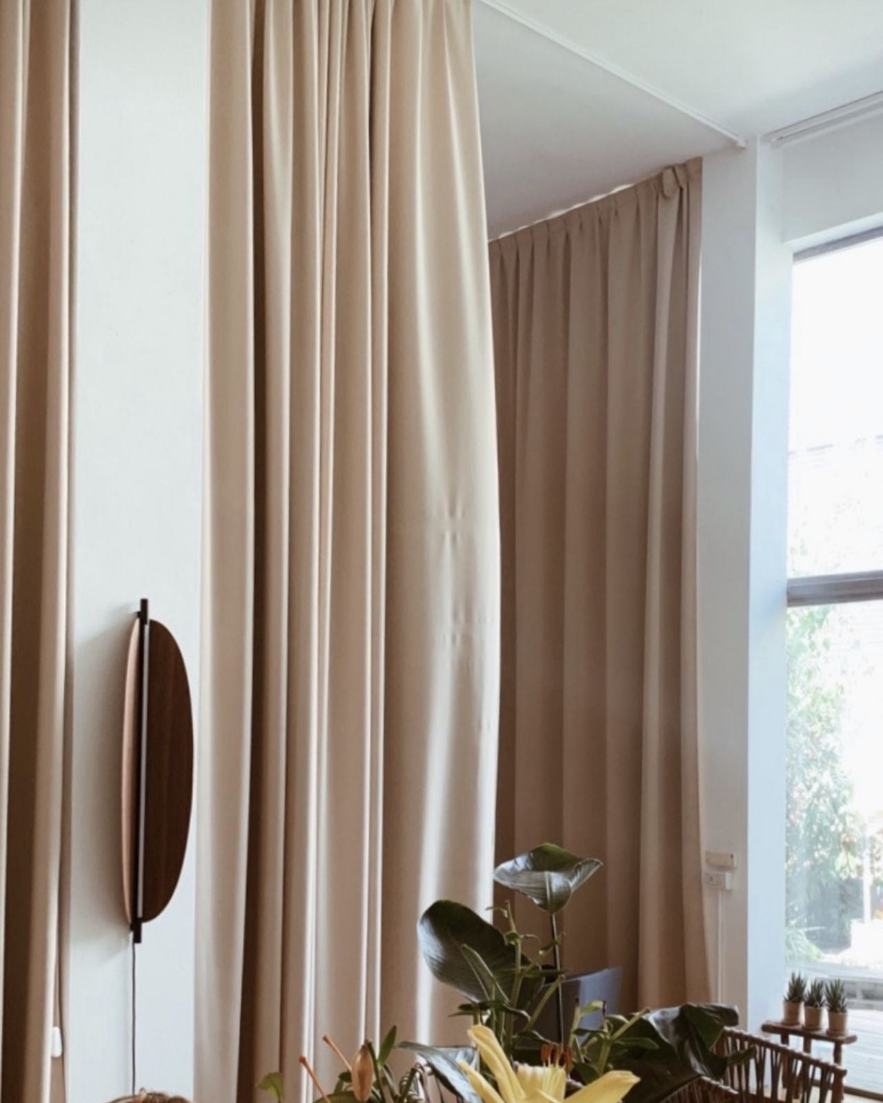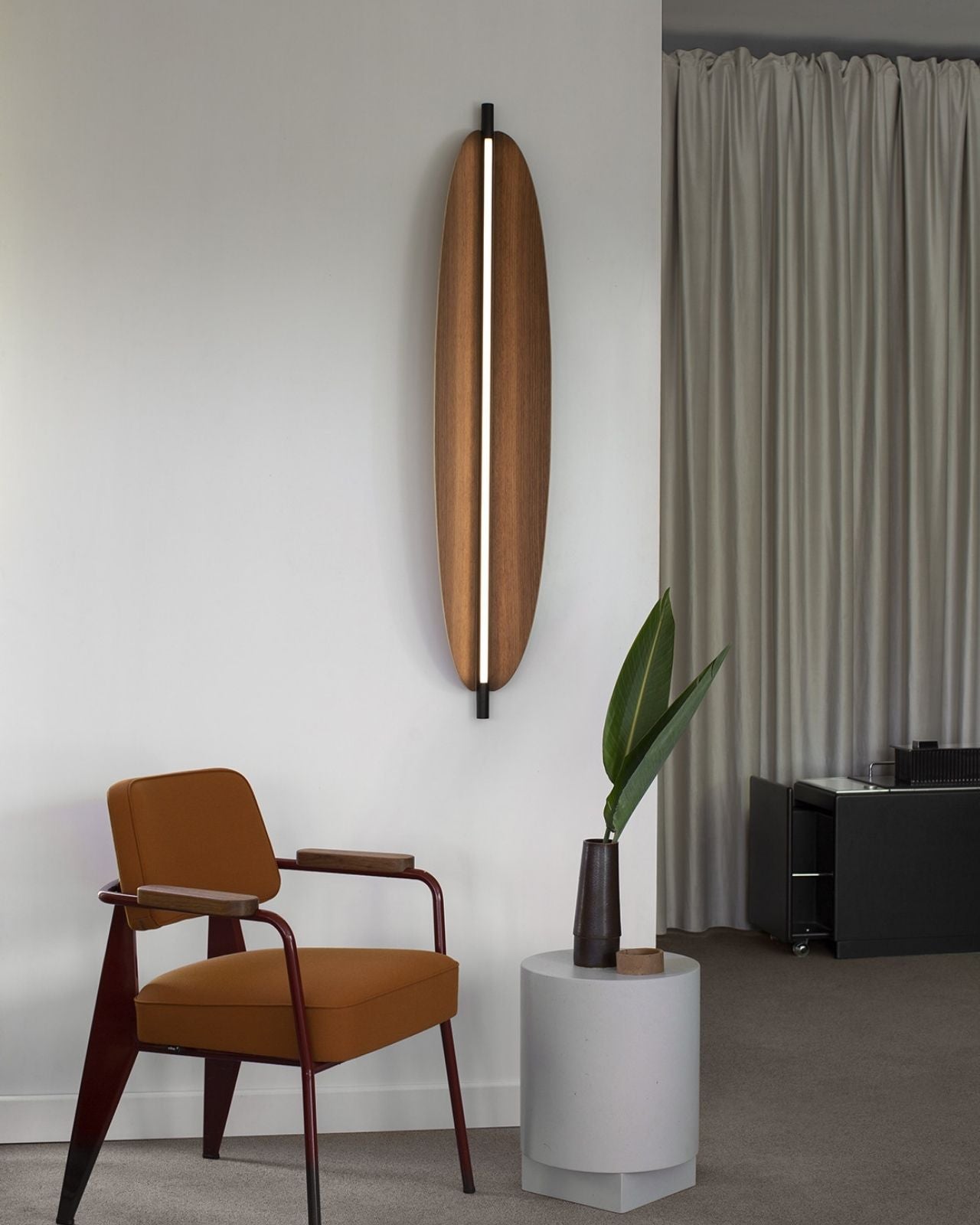 Italian Organic Leaf Wall Light next to a curtain