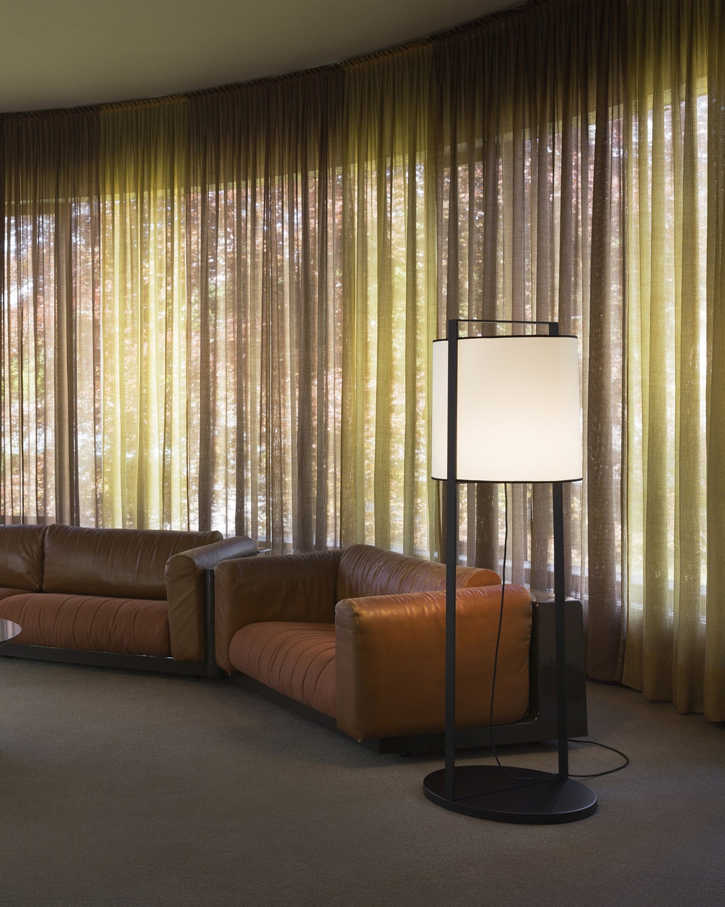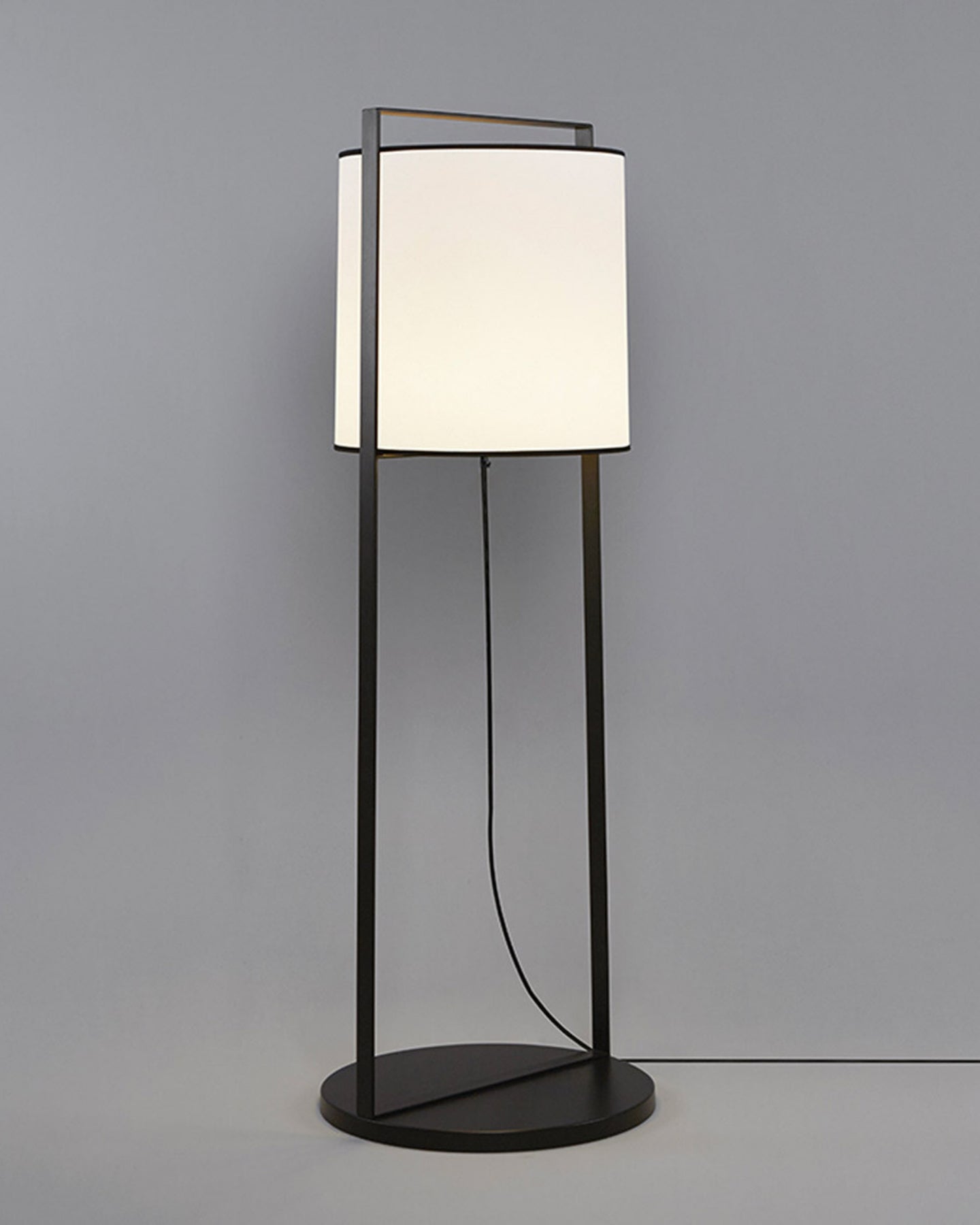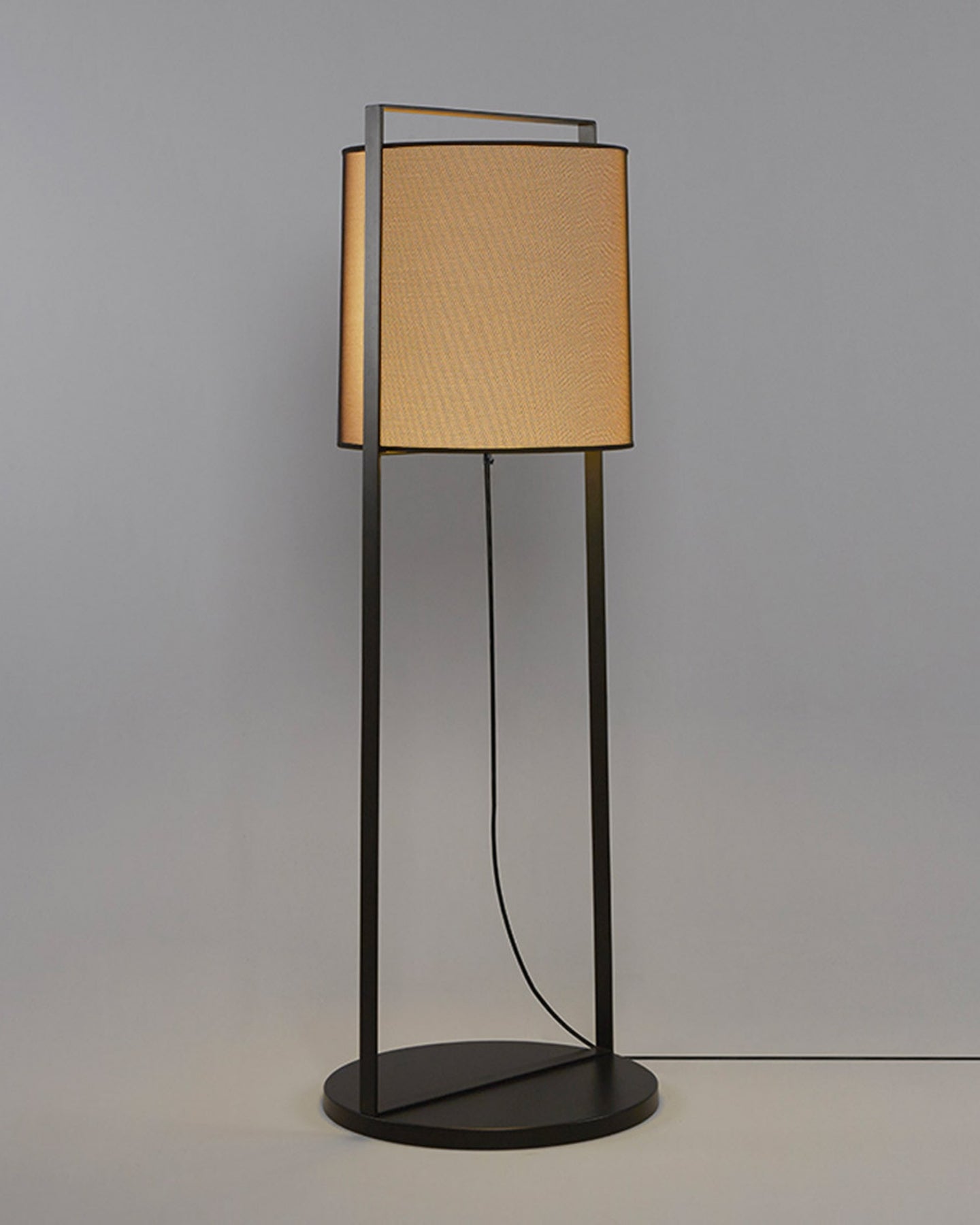 This minimalist floor lamp is a modern and elegant version of a traditional lantern. The wide shape of the lampshade made from white or beige mesh fabric contrasts with the sleek structure crafted from metal painted with epoxy powders. The Minimalist Lantern Floor Lamp can be placed in a bedroom, next to a sofa in a living room or in a reading nook to provide a perfect ambient soft light in the surroundings and will set a cosy atmosphere.