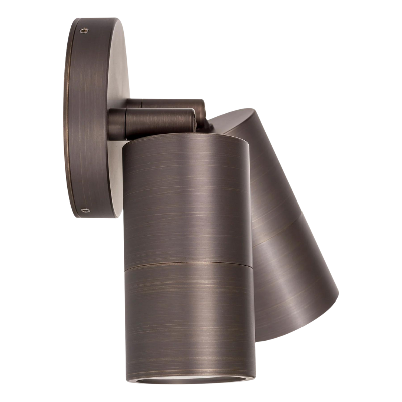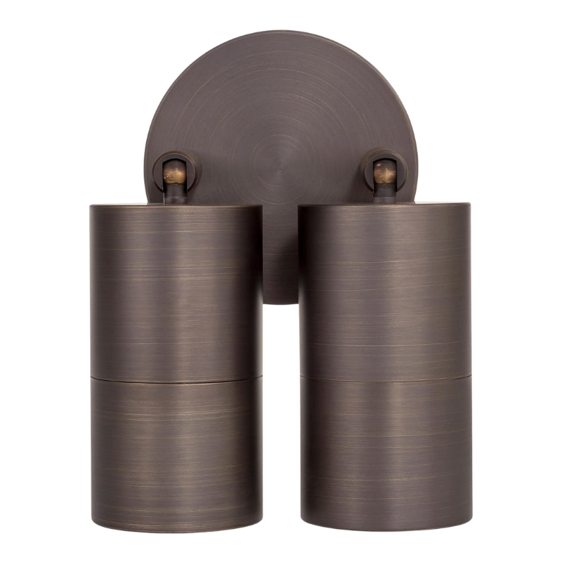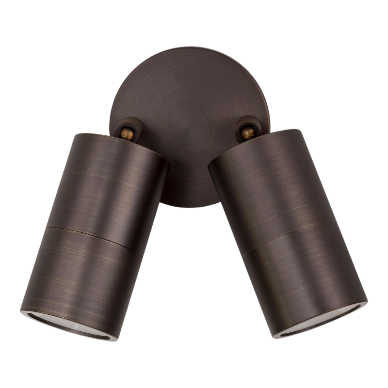 Stunning adjustable double head exterior spot light. This adjustable spotlight is highly durable, with an IP rating of IP65, it is perfect for withstanding harsher climates. The sleek and elegant profile allows the piece to seamlessly blend into a range of exterior environments. Made from solid brass with a graphite finish.