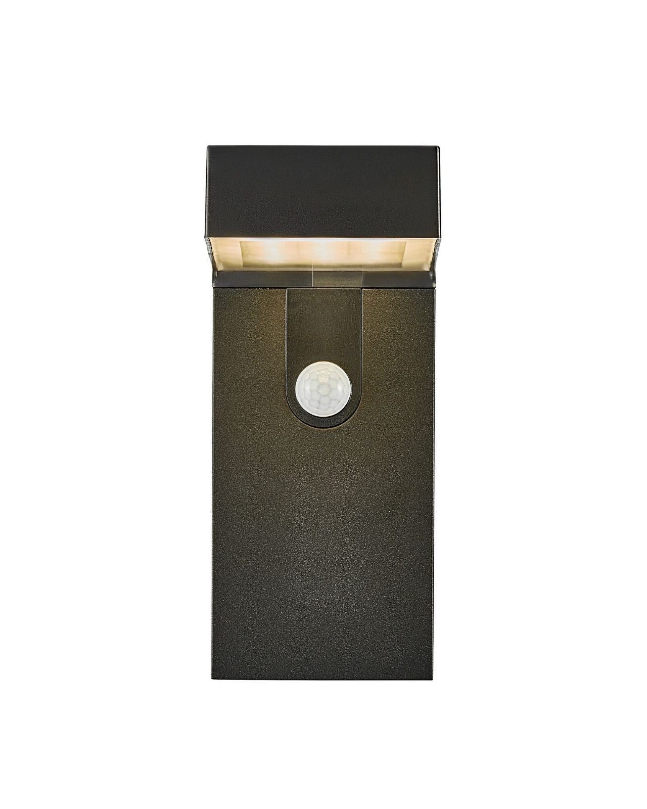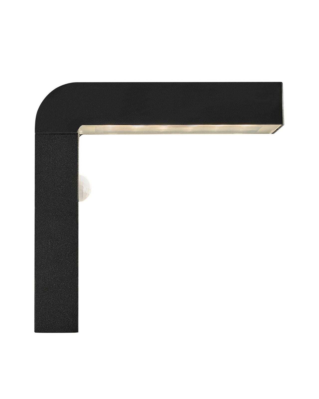 Constructed from durable plastic and boasting a sleek black finish, this wall light has a simplistic design and angled shape. It features a solar panel at the top, efficiently converting sunlight to electricity and storing it in a battery. With an inbuilt sensor that detects movement within an 8-meter range, this light will automatically turn on. With an IP44 rating, this design is suitable for covered areas such as main entrances, garages, and terraces. Emitting a downward glow in a pleasant, warm white tone, it is perfect for providing both illumination and ambience.