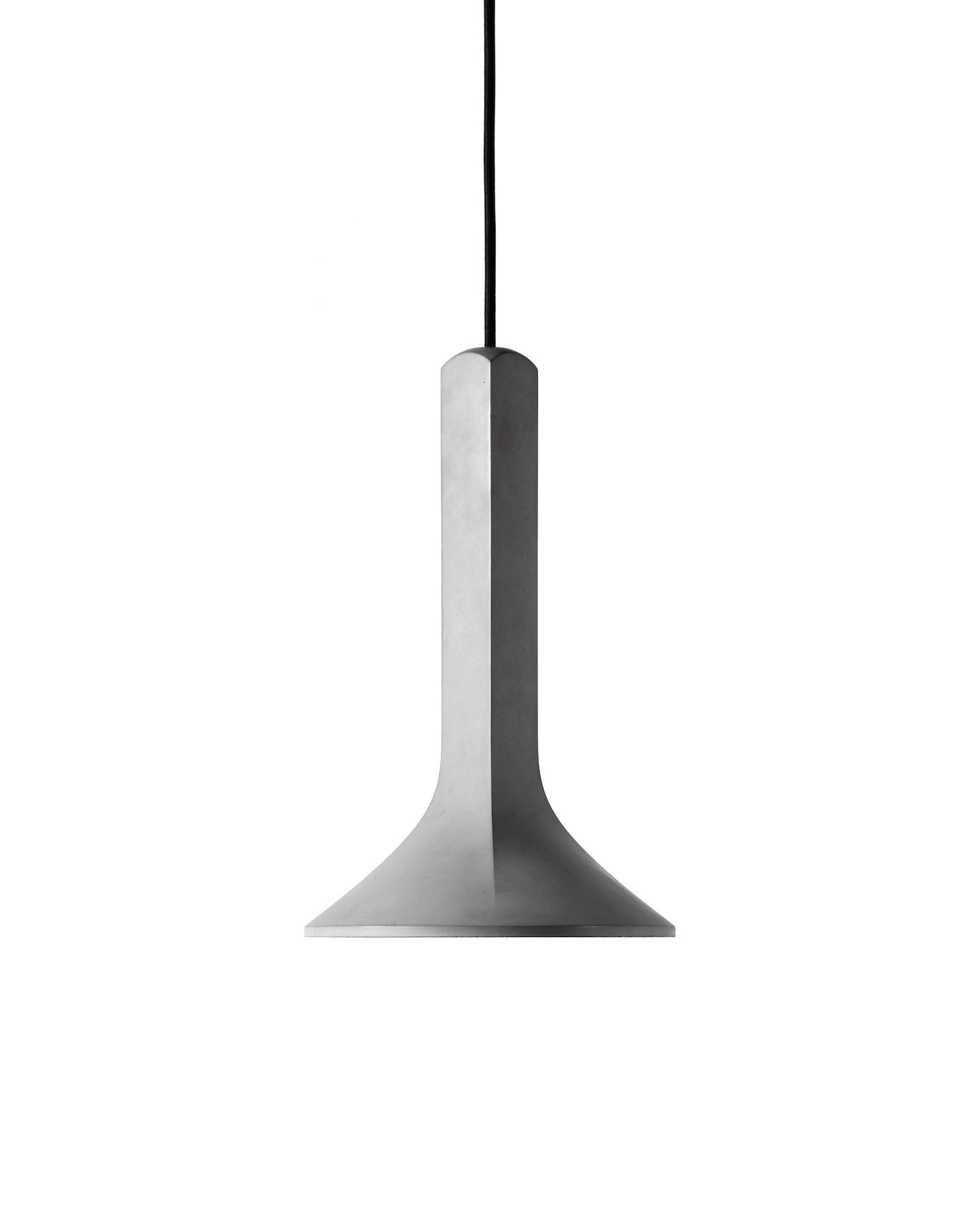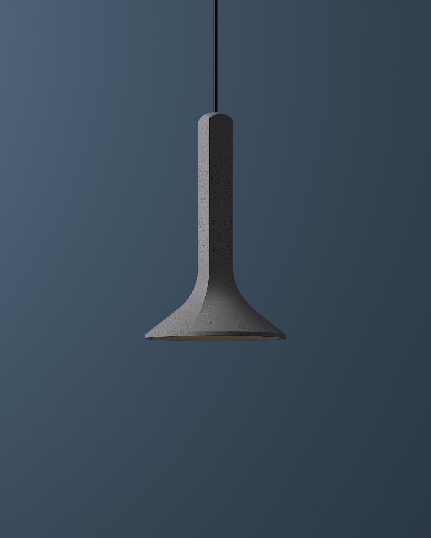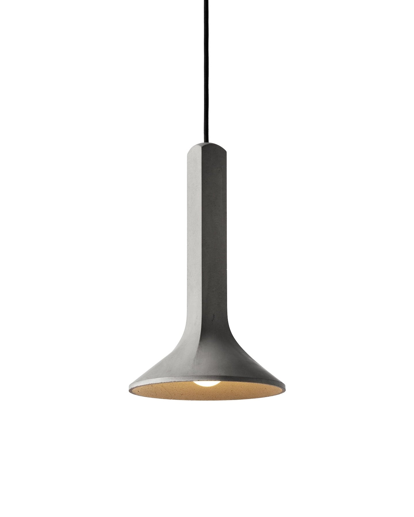 Crafted from recycled and new concrete this brutalist-styled pendant seamlessly transitions a square body into a round shade. This smooth yet rigid concrete design is suitable for residential and commercial interiors, suspended as a singular pendant or grouped as a cluster. This pendant provides warm downlight and is supplied with a warm white E14 globe.