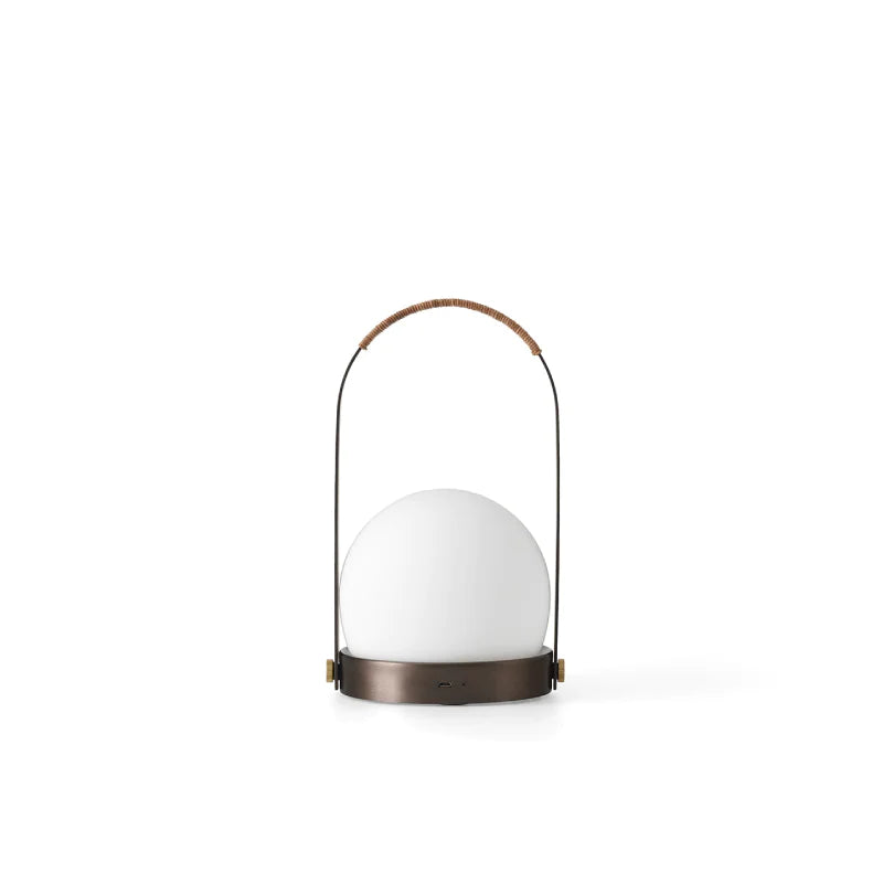 This contemporary lantern is available in Brass or Bronzed Brass and can be showcased on a bookshelf, bedside table, or terrace table. The mouth-blown glass orb houses a built-in LED, which emits a warm and pleasant glow. The sleek and minimalist Scandinavian design is complemented by a soft and durable brown leather handle. The USB charge is discreetly concealed and easy to use, providing 10 hours of light when fully charged.