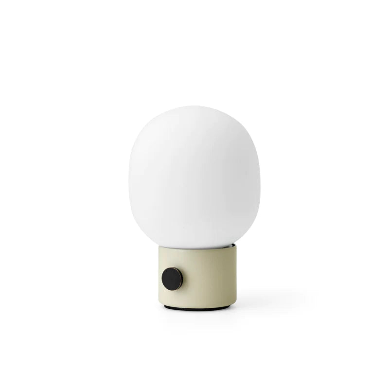 Inspired by traditional oil lamps, this portable light features an oval glass shade and a solid steel base available in alabaster white, black or dusty green. Cordless, this small-scale lamp will deliver 10 hours of glare-free warm white light that can be adjusted thanks to a brass dimmer switch to set the desired ambience. Displayed on a bookshelf, a bedside table or a console table, it will bring an elegant, contemporary and Scandinavian touch to any interior.